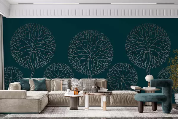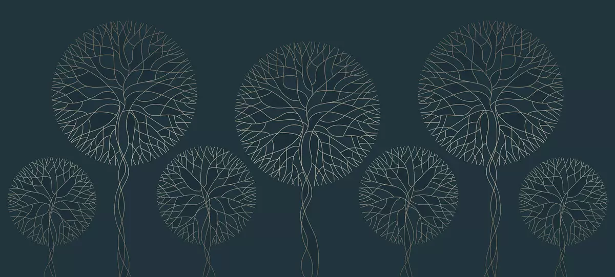 Valokuvatapetti Fantasia lineaariset puut, joiden latvukset ovat rehevät ja elegantit tumman smaragdinväriset Nr w05213
