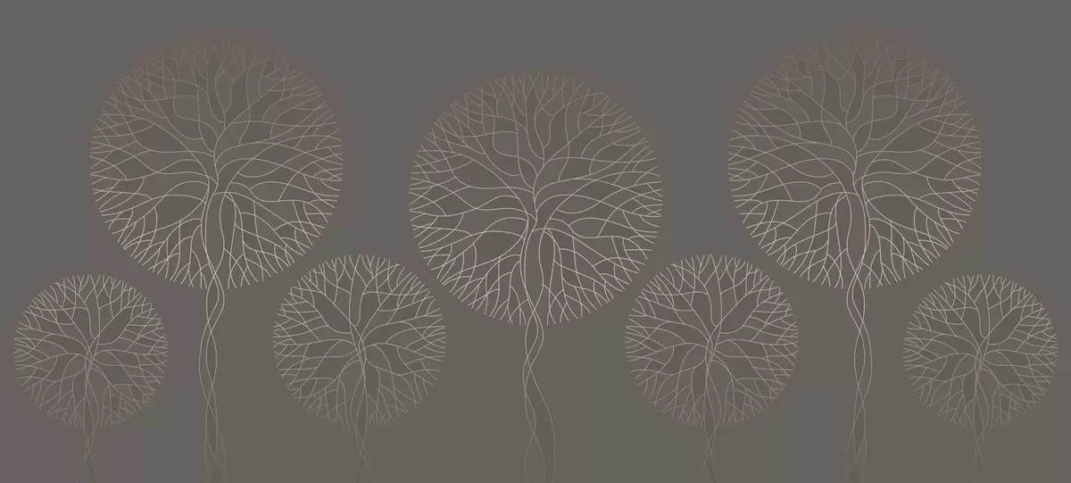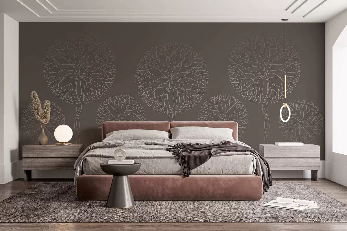 Valokuvatapetti Fantasia lineaariset puut, joissa on rehevät latvukset elegantissa mokkavärissä Nr w05213v1