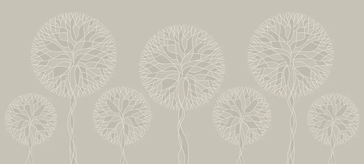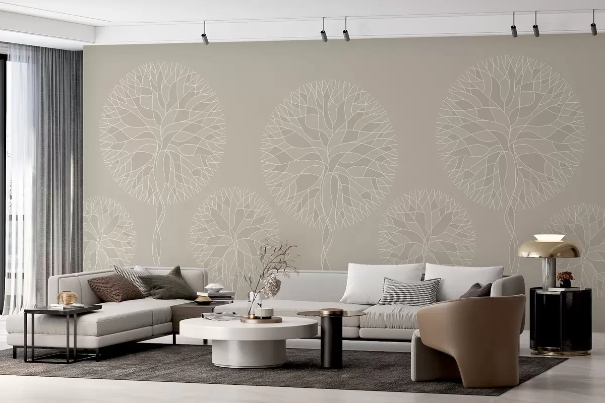 Valokuvatapetti Fantasia lineaariset puut, joiden latvukset ovat rehevät ja beigejä sävyjä Nr w05213v3