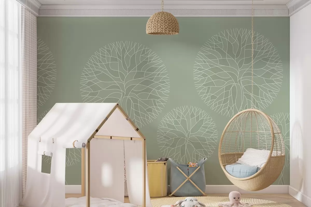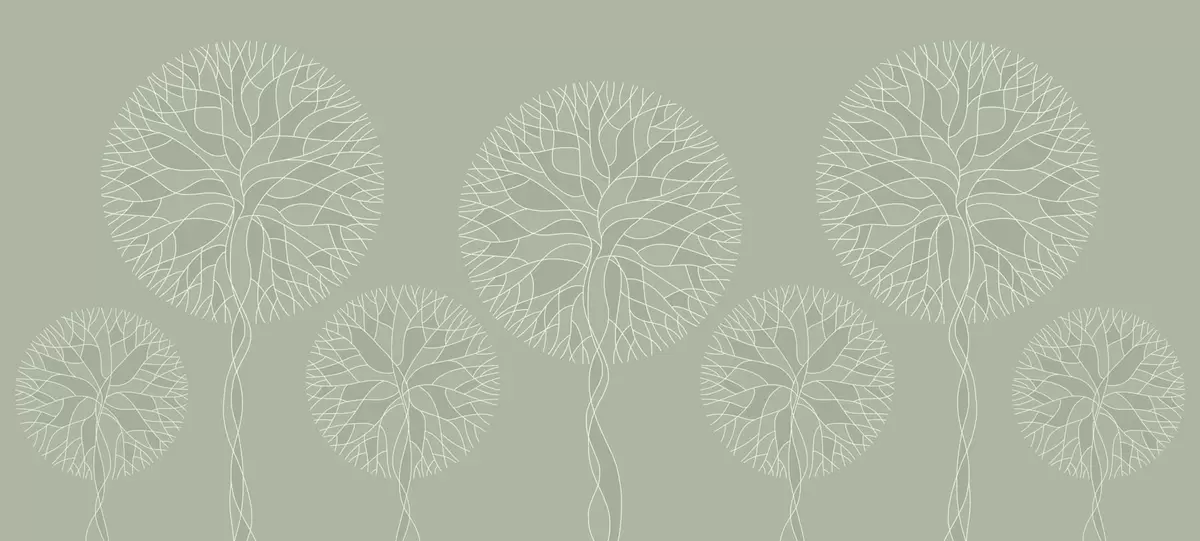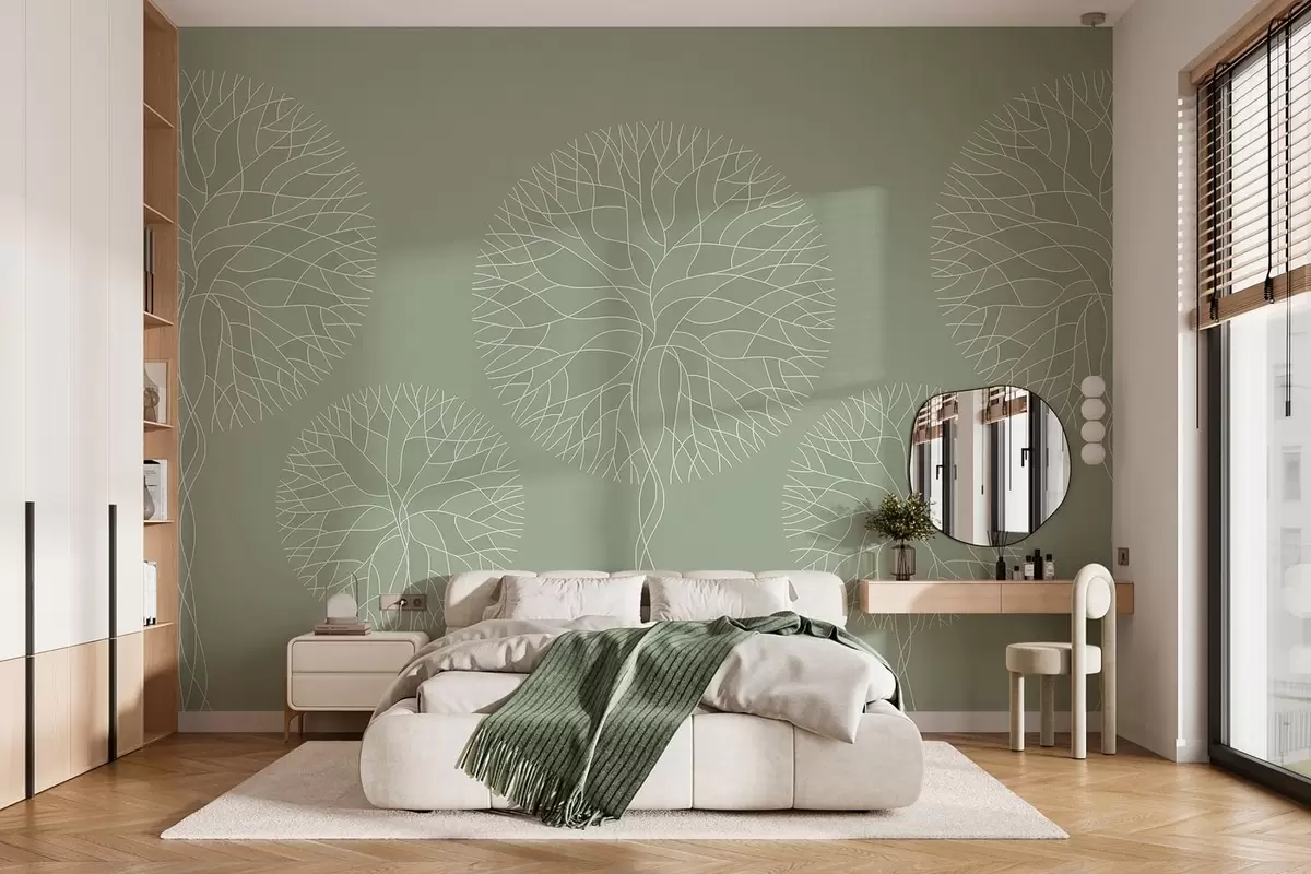 Valokuvatapetti Fantasia lineaariset puut, joiden latvukset ovat rehevät ja vaaleanvihreät Nr w05213v6