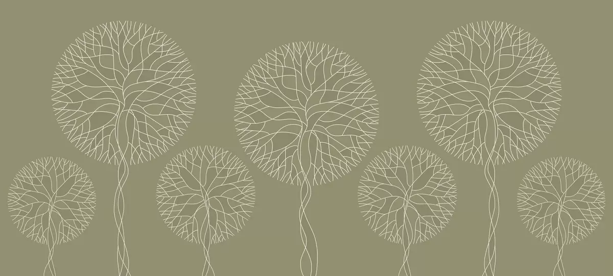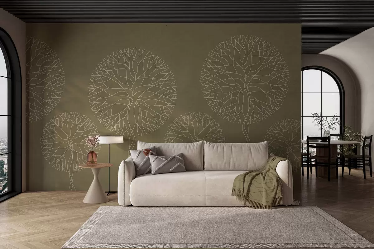 Valokuvatapetti Fantasia lineaariset puut, joiden latvukset ovat rehevät ja khakinväriset Nr w05213v7
