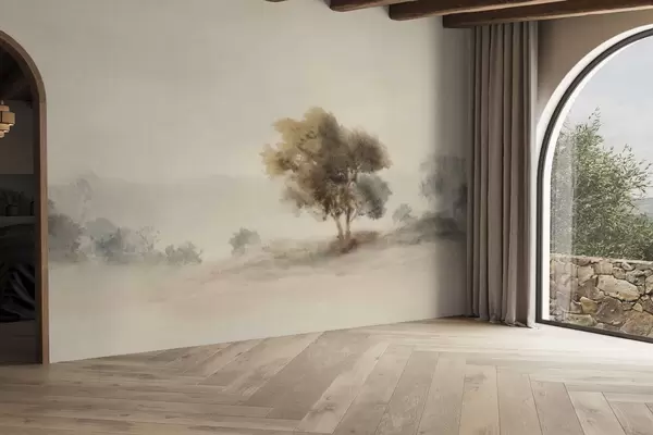 Valokuvatapetti Minimalistinen maisema, jossa on yksinäinen puu sumussa Nr w05223