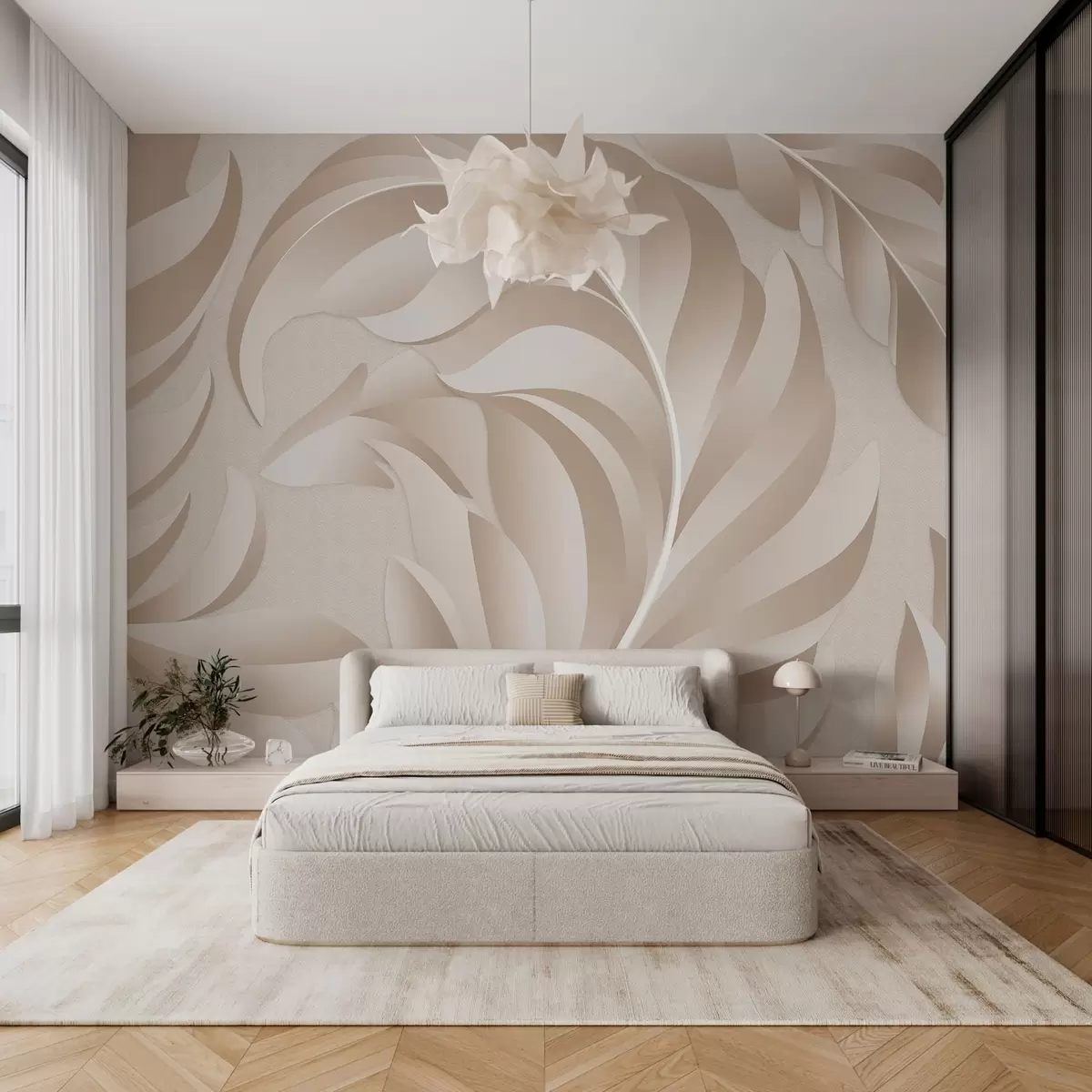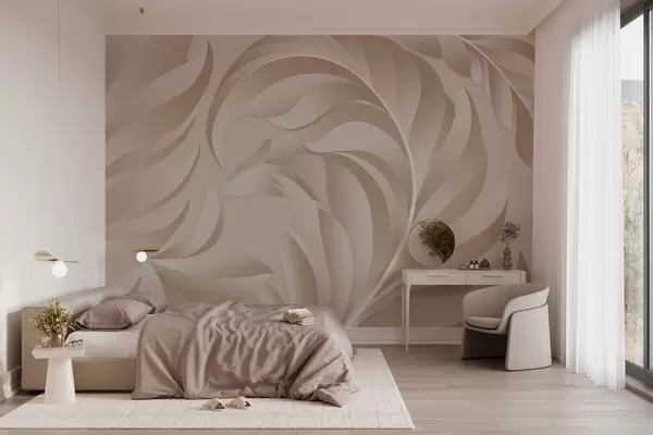 Valokuvatapetti suuret teksturoidut höyhenet beige- ja puuterisävyissä Nr w05231