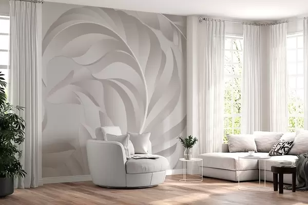 Valokuvatapetti suuret, teksturoidut höyhenet helmiäisissä sävyissä Nr w05231v2