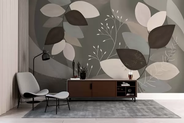 Valokuvatapetti tummasävyiset lehdet ja ruoho Nr w05237v1