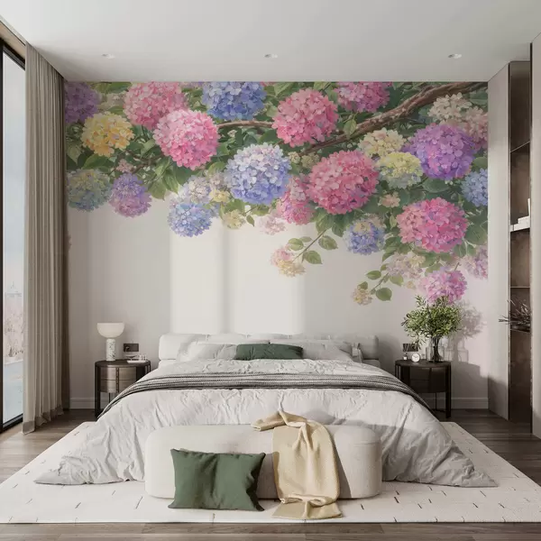 Valokuvatapetti Maalatut hydrangeat roikkuvat alas Nr w05250