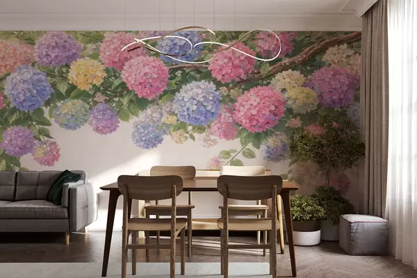 Valokuvatapetti Maalatut hydrangeat roikkuvat alas Nr w05250