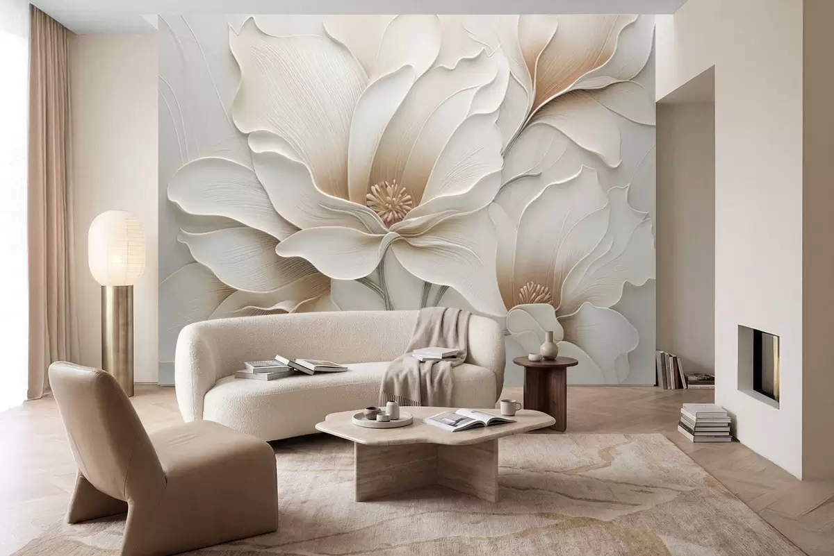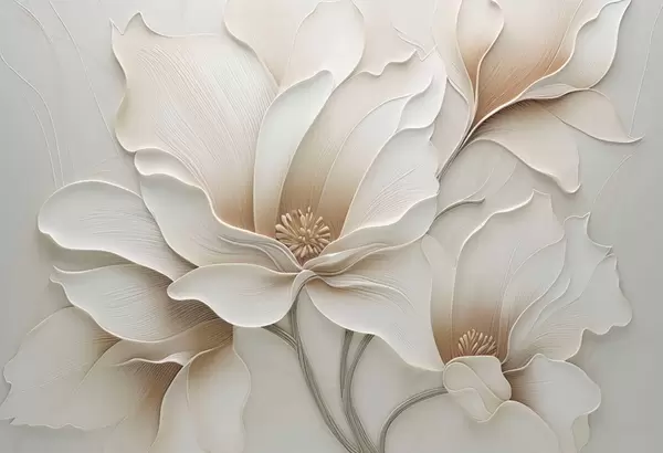 Valokuvatapetti Kohokuvioitu beige kukka reliefi lähikuva Nr w05269