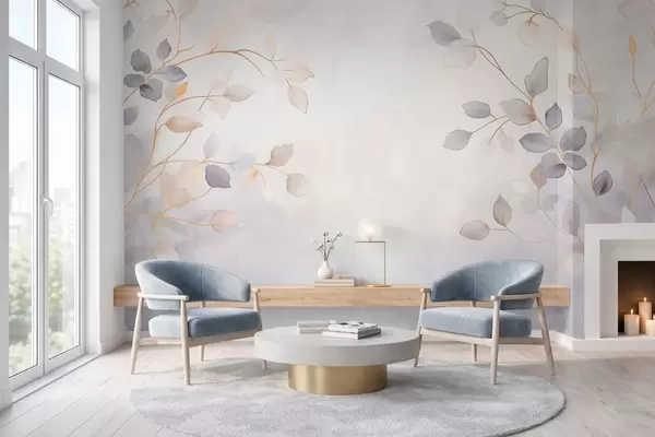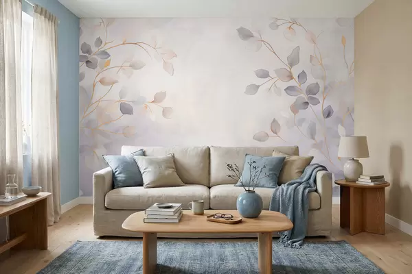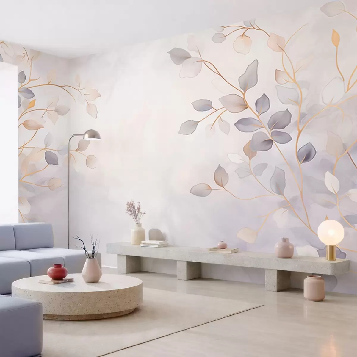 Valokuvatapetti Hienostuneet lehtiset oksat pehmeällä, sumealla taustalla Nr w05296