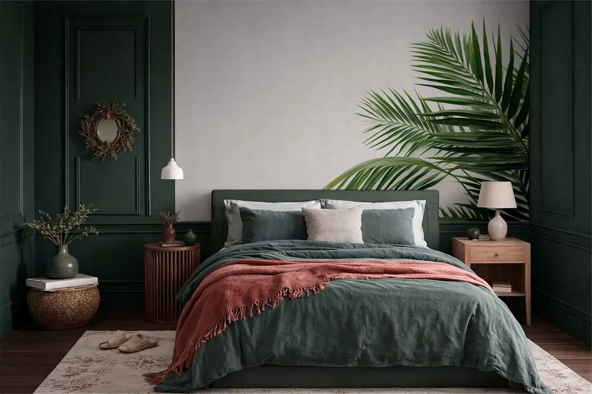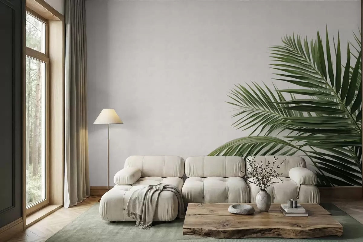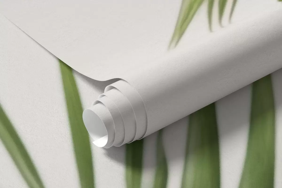 Valokuvatapetti Vihreät palmunlehdet vaalealla taustalla Nr w05391