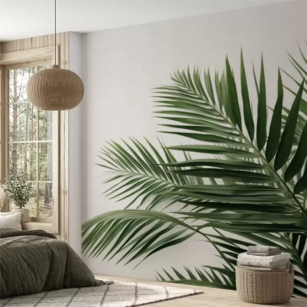 Valokuvatapetti Vihreät palmunlehdet vaalealla taustalla Nr w05391