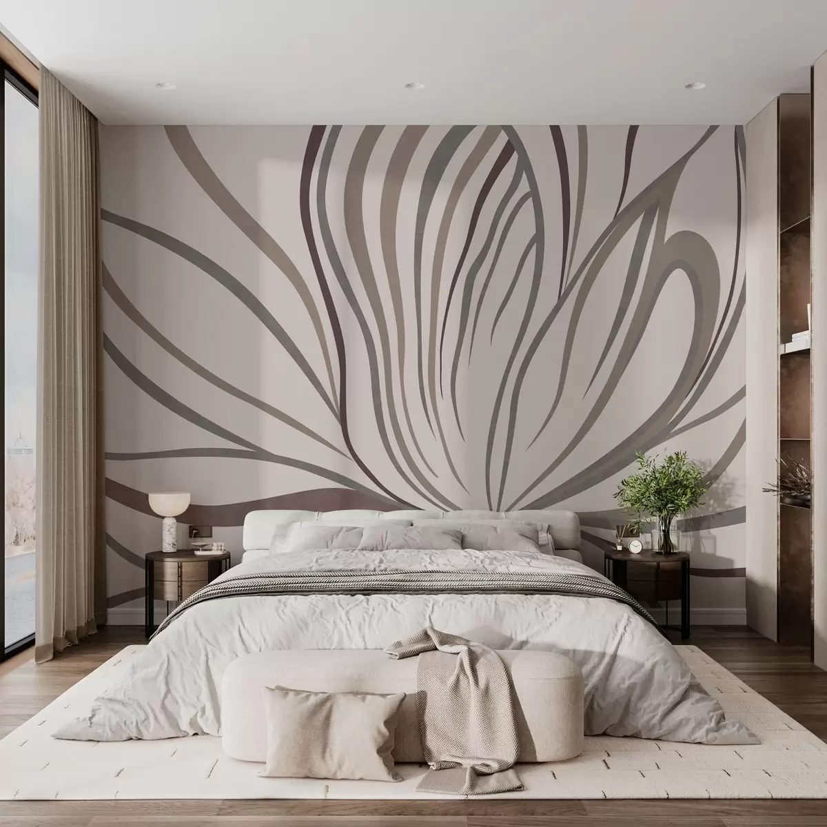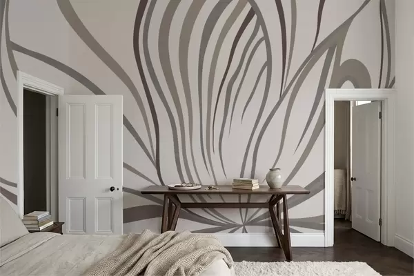 Valokuvatapetti Abstrakti kukka, jossa on harmaansävyisiä ja vaaleanpunaisia viivoja Nr w05392