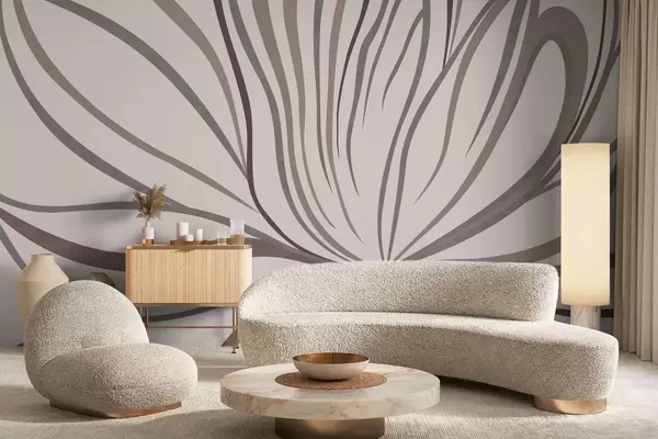 Valokuvatapetti Abstrakti kukka, jossa on harmaansävyisiä ja vaaleanpunaisia viivoja Nr w05392