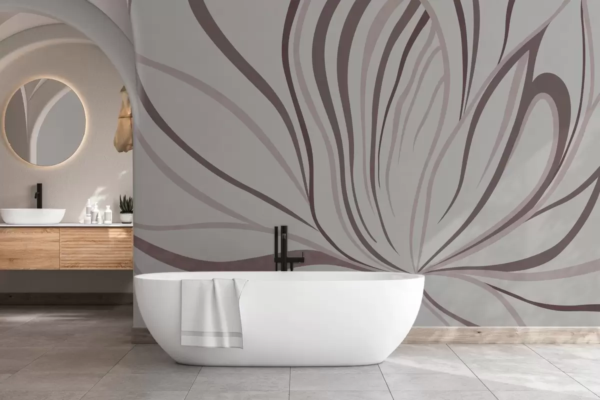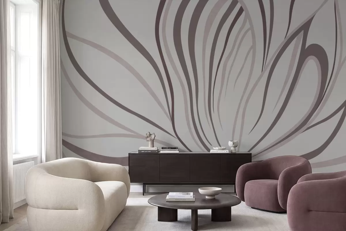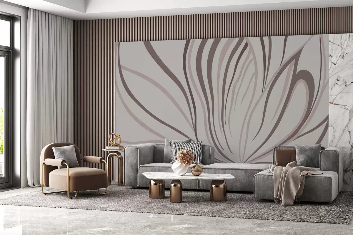 Valokuvatapetti Tyylitelty kukka, jossa on pehmeät linjat vaaleanpunaisissa ja beigeissä sävyissä Nr w05392v1