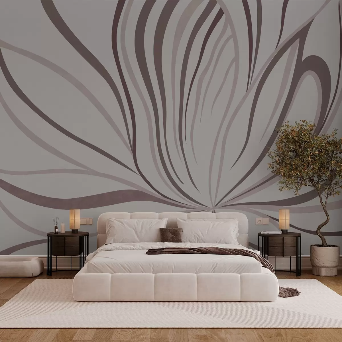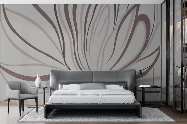Valokuvatapetti Tyylitelty kukka, jossa on pehmeät linjat vaaleanpunaisissa ja beigeissä sävyissä Nr w05392v1