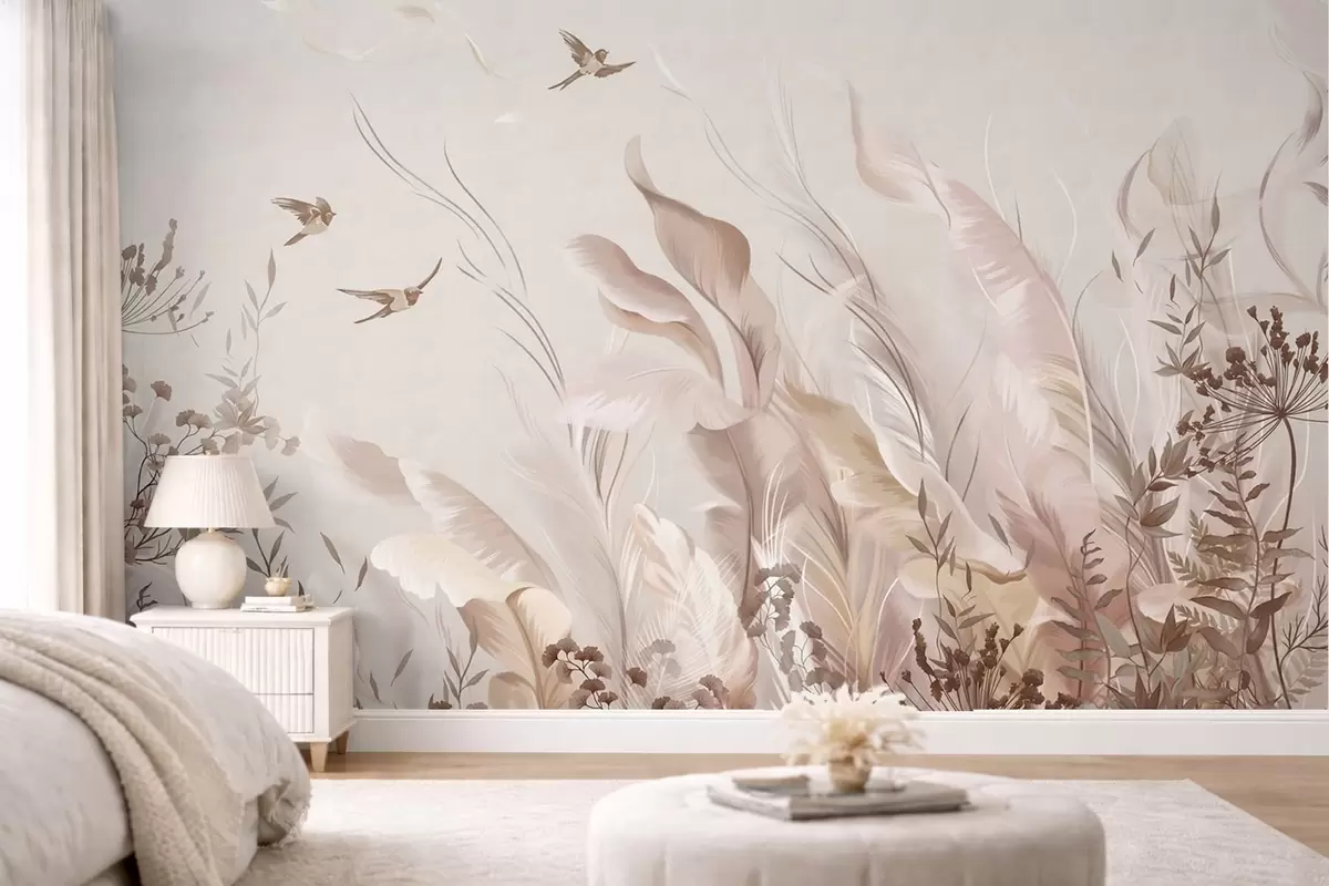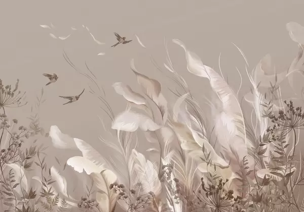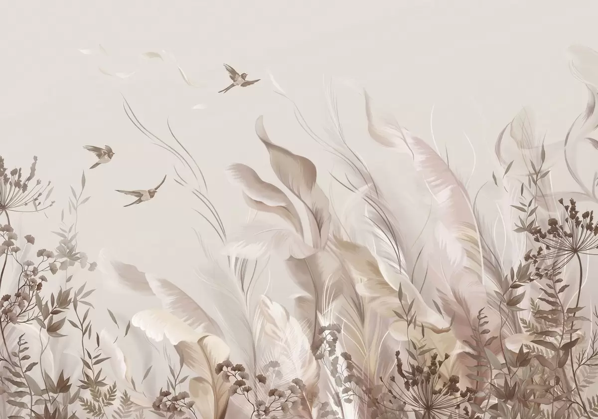 Valokuvatapetti Pehmeät höyhenet, ruoho ja linnut vaaleissa sävyissä Nr w05395