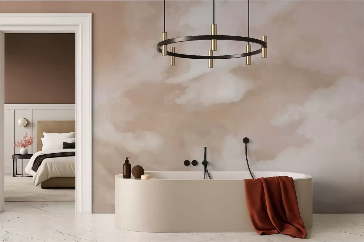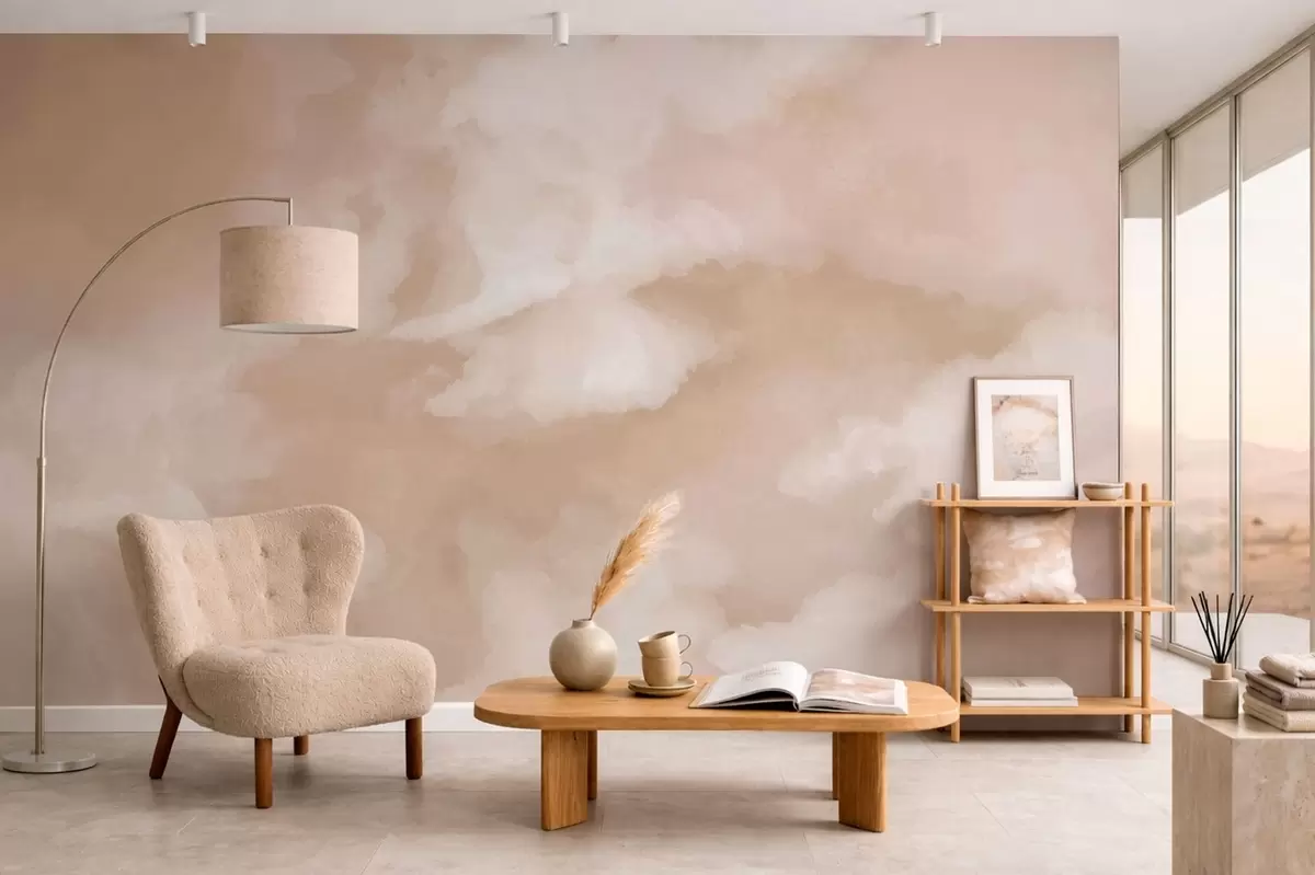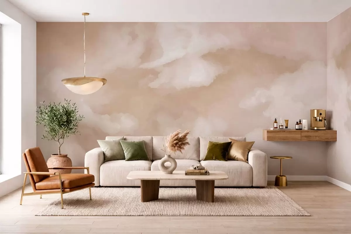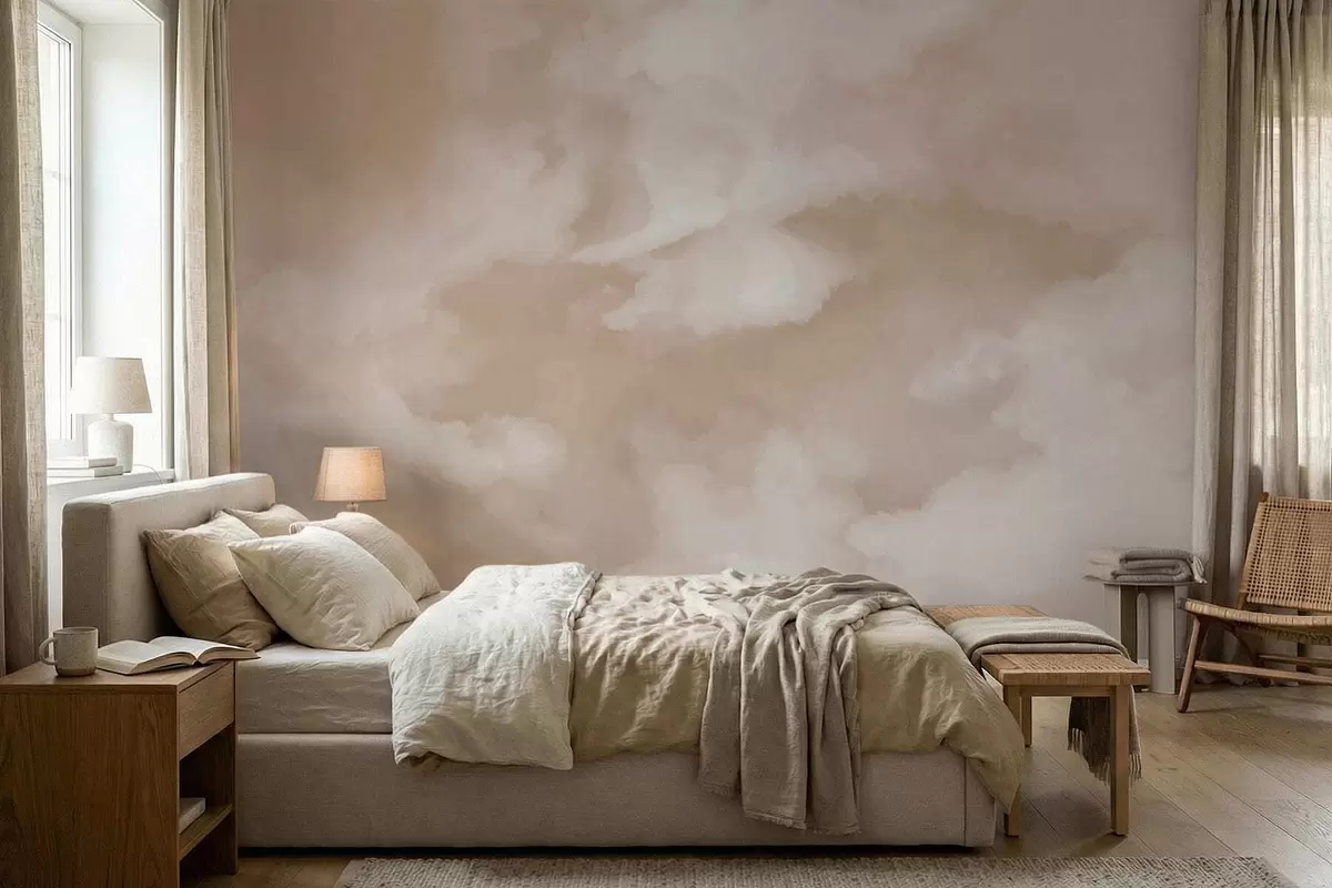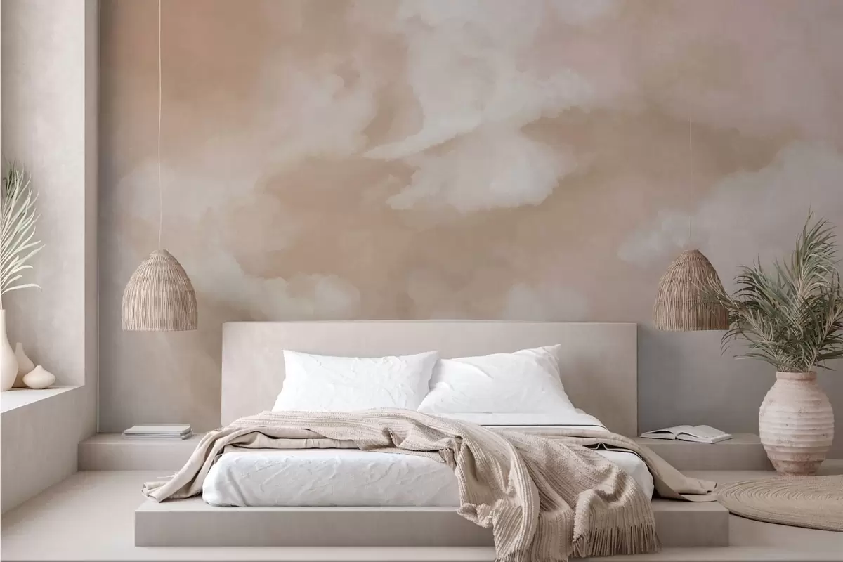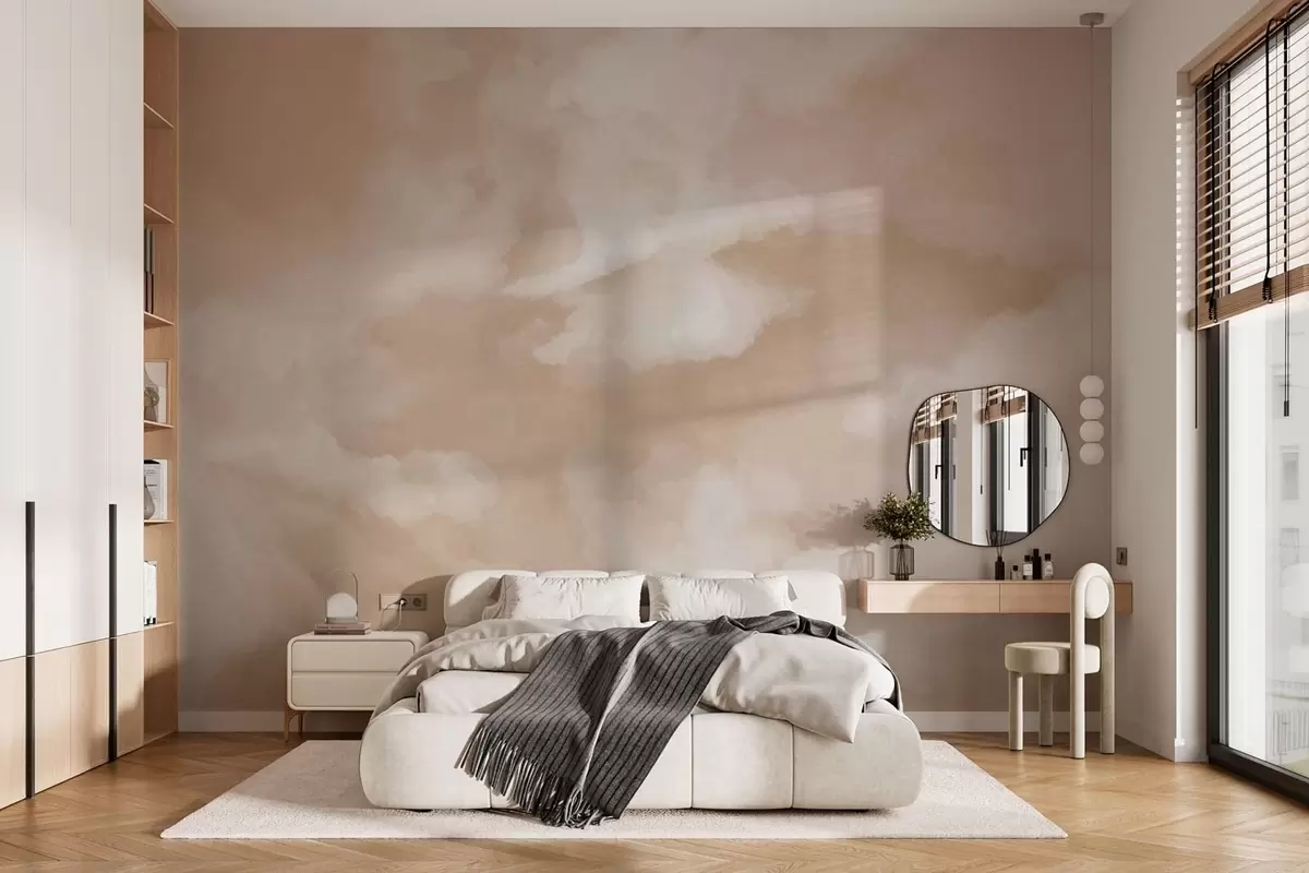 Valokuvatapetti Pehmeä, pilvinen tausta lämpimissä beigeissä sävyissä Nr w05426