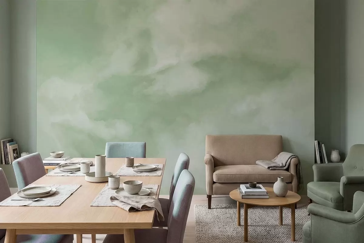Valokuvatapetti Pehmeä, pilvinen tausta pehmeissä vihreissä sävyissä Nr w05426v2