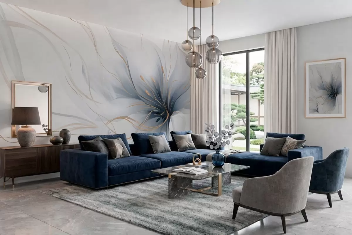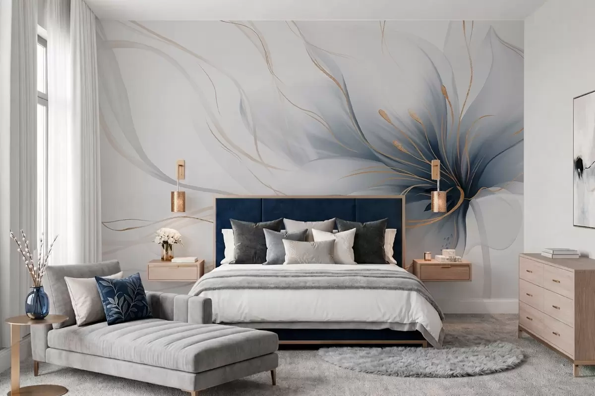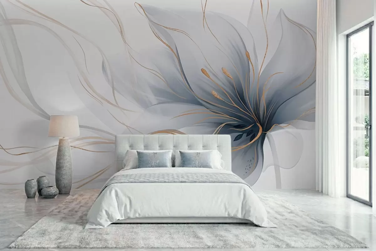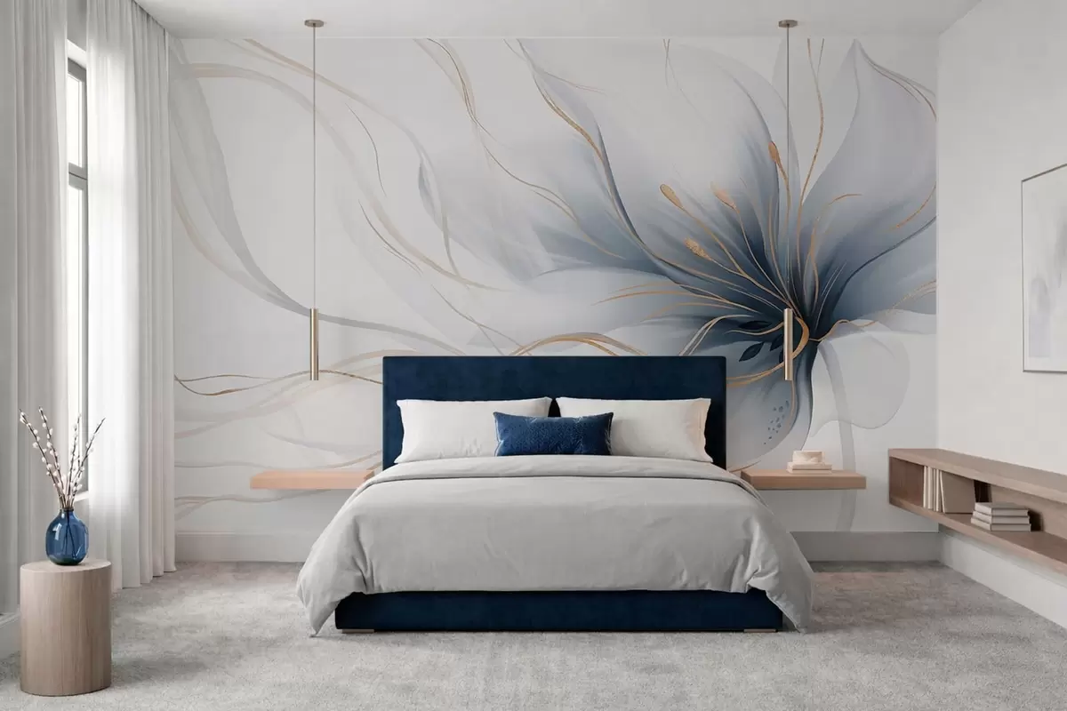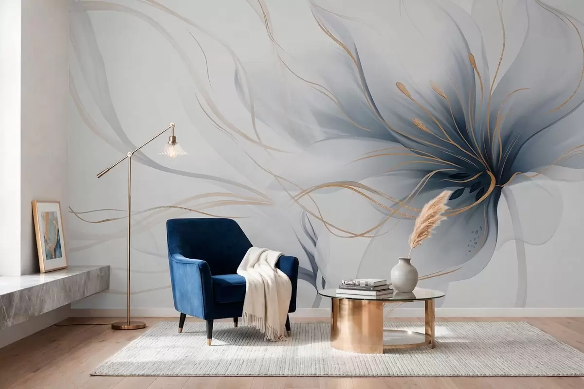 Valokuvatapetti Abstrakti sininen kukka, jossa on virtaavia viivoja Fluid Art -tyylillä Nr w05428