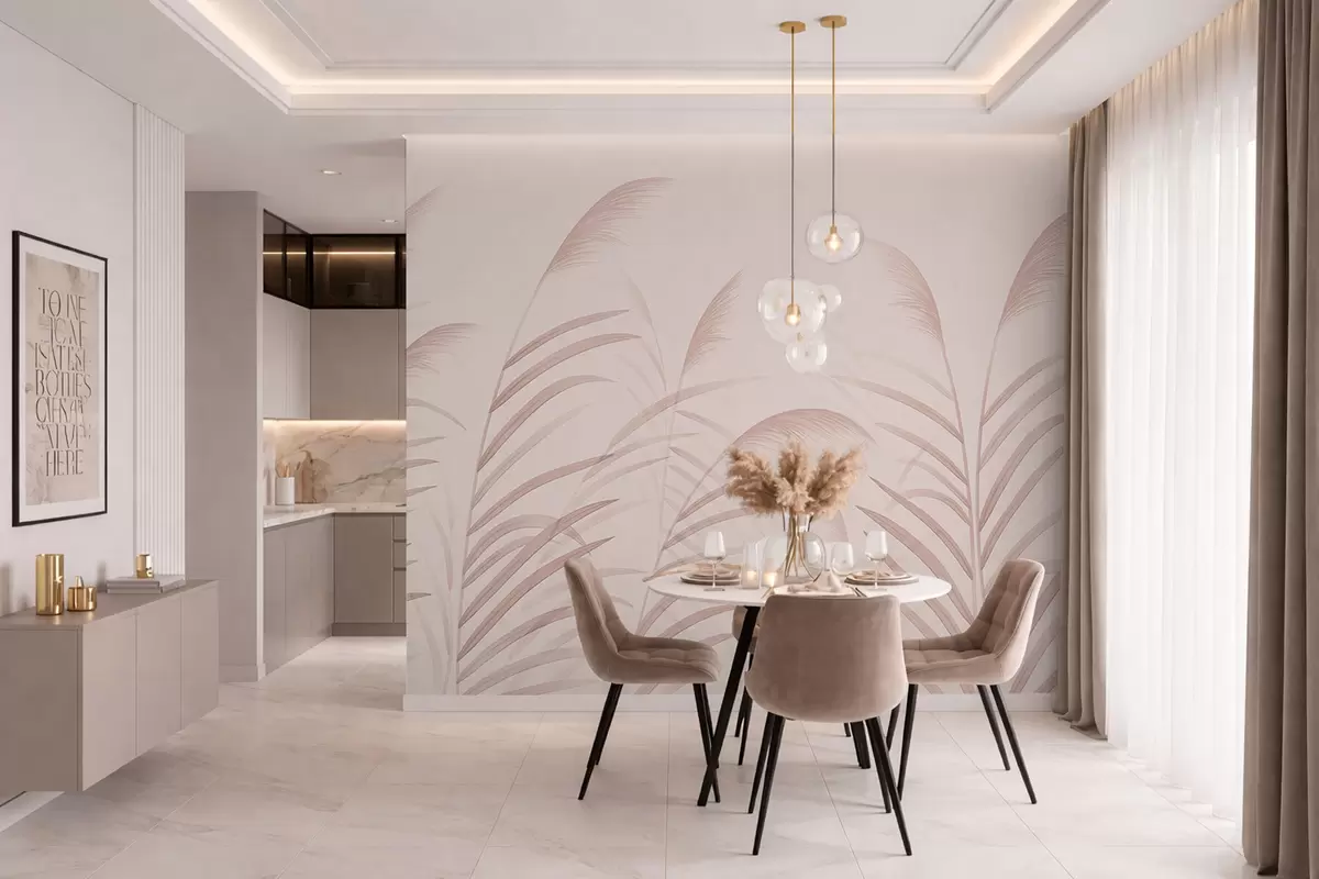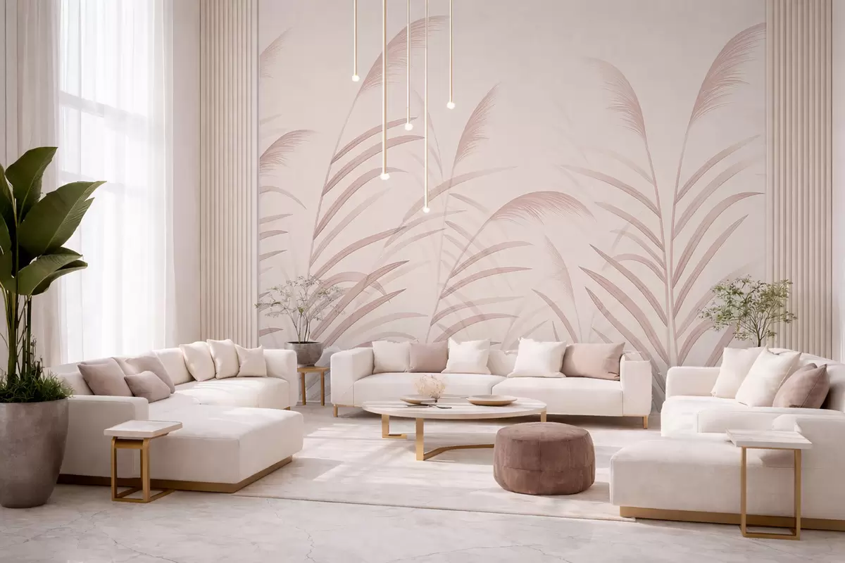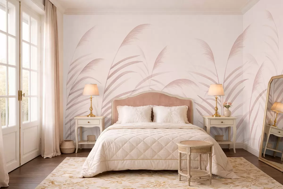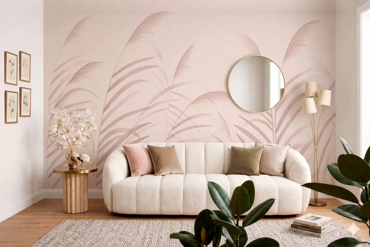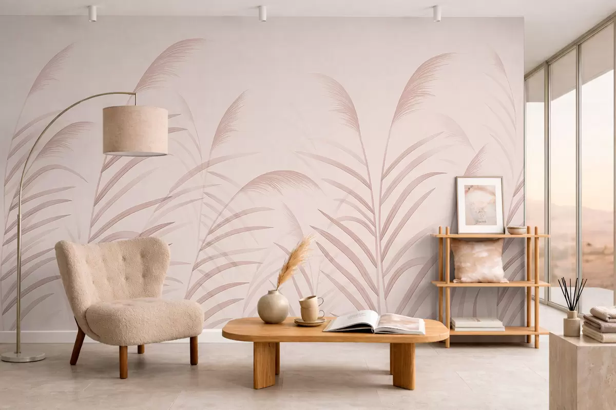 Valokuvatapetti Minimalistiset ruohokasvit pehmeissä vaaleanpunaisissa sävyissä Nr w05432v2