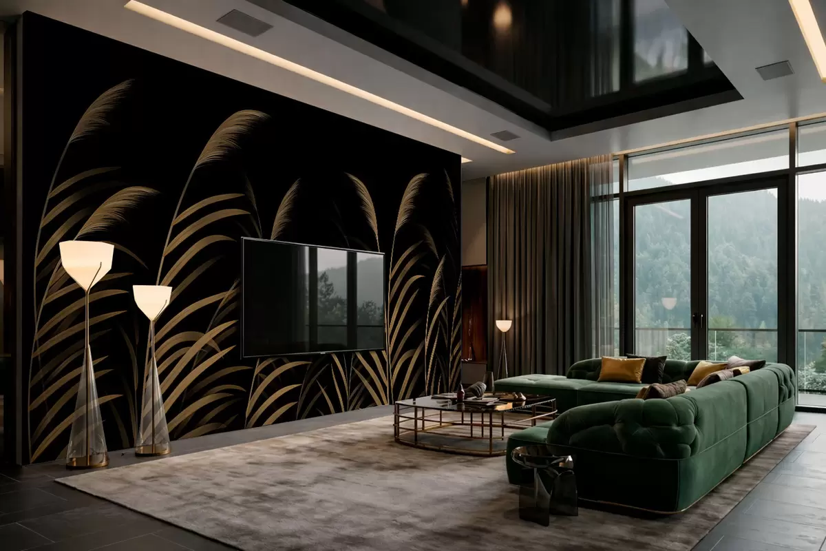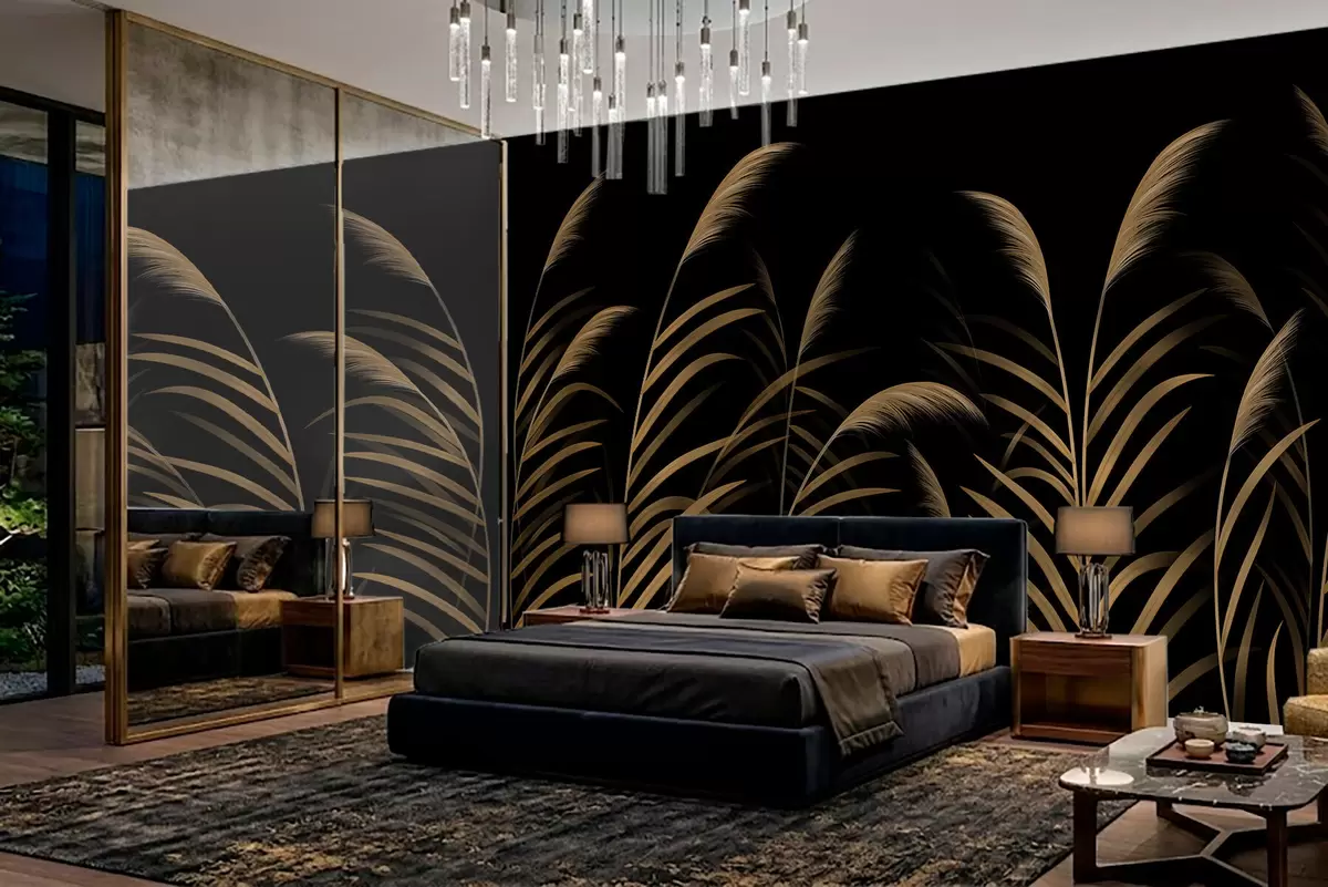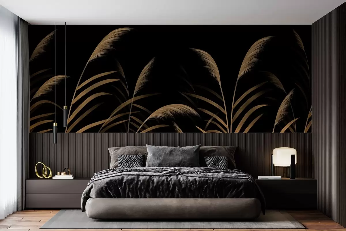 Valokuvatapetti Minimalistiset ruohot tummalla taustalla, voimakas kontrasti Nr w05432v3