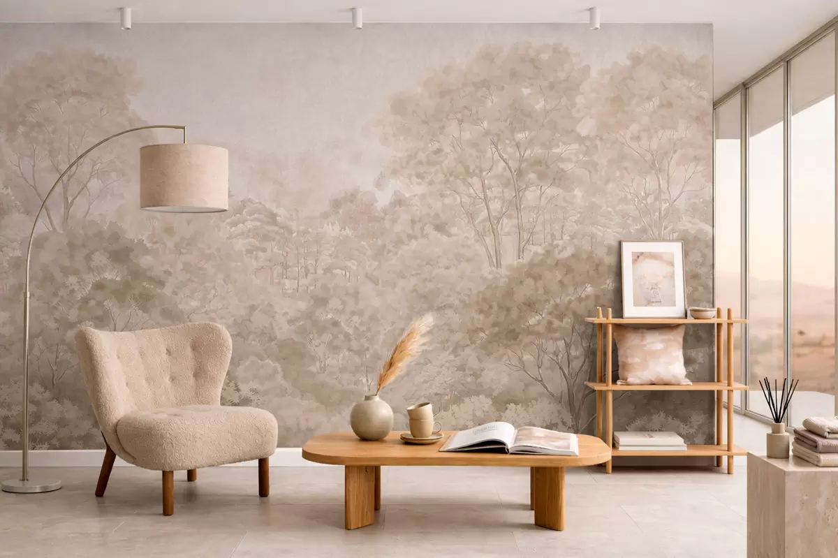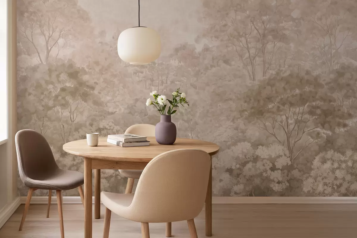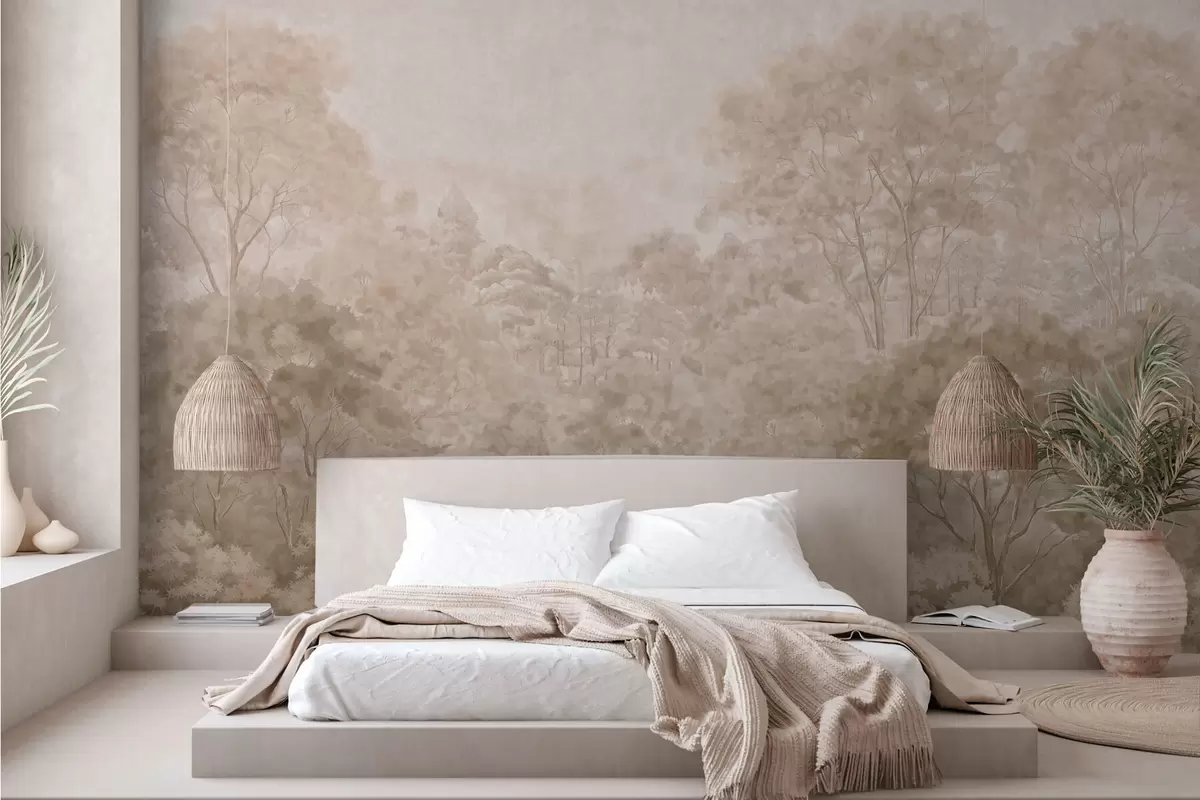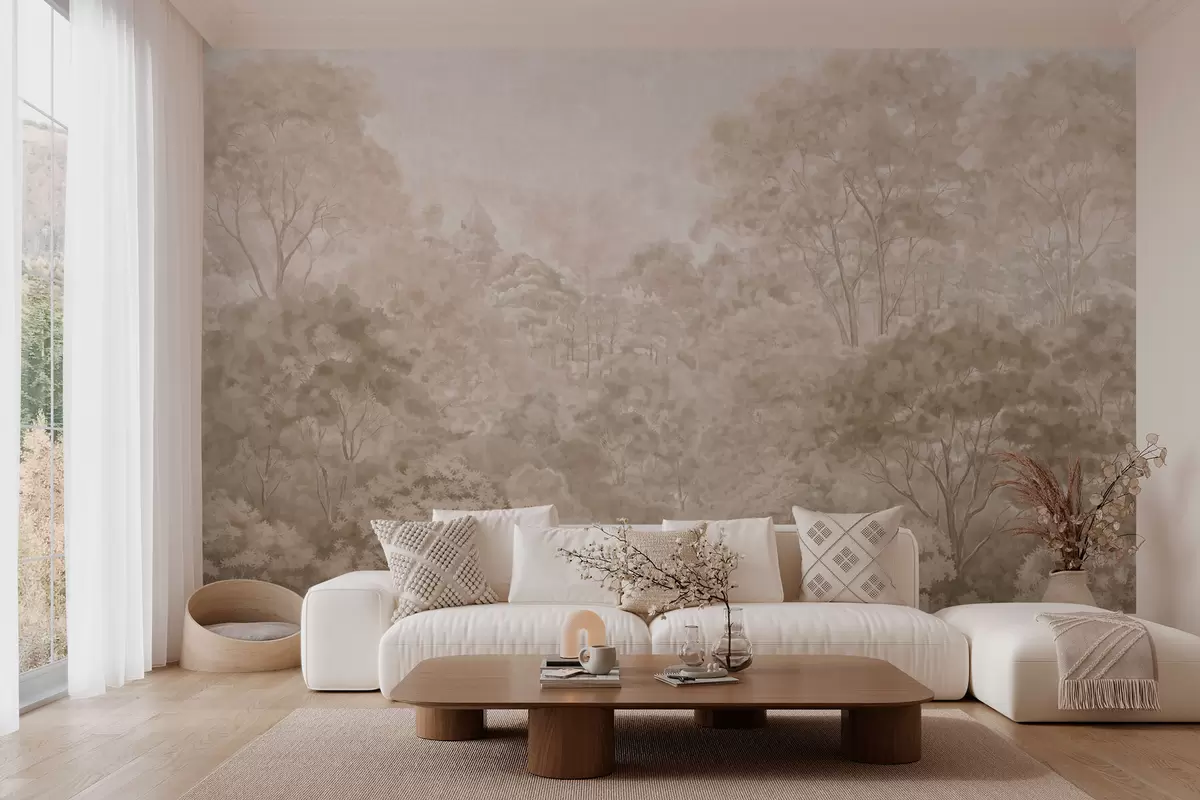 Valokuvatapetti Vintage-tyylinen metsämaisema lämpimissä beigeissä sävyissä Nr w05433v1