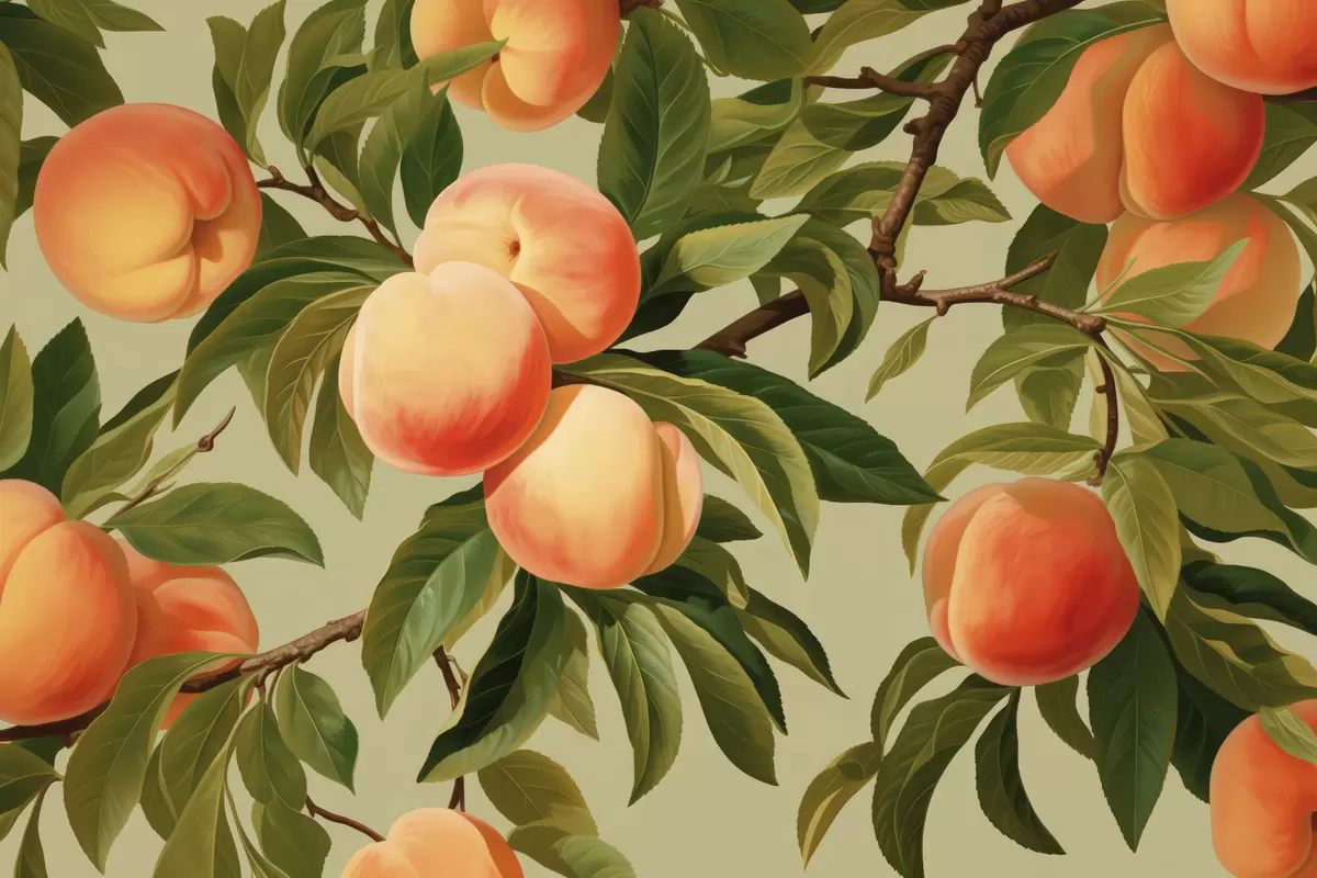 Valokuvatapetti Kypsät persikat oksilla Nr w05444