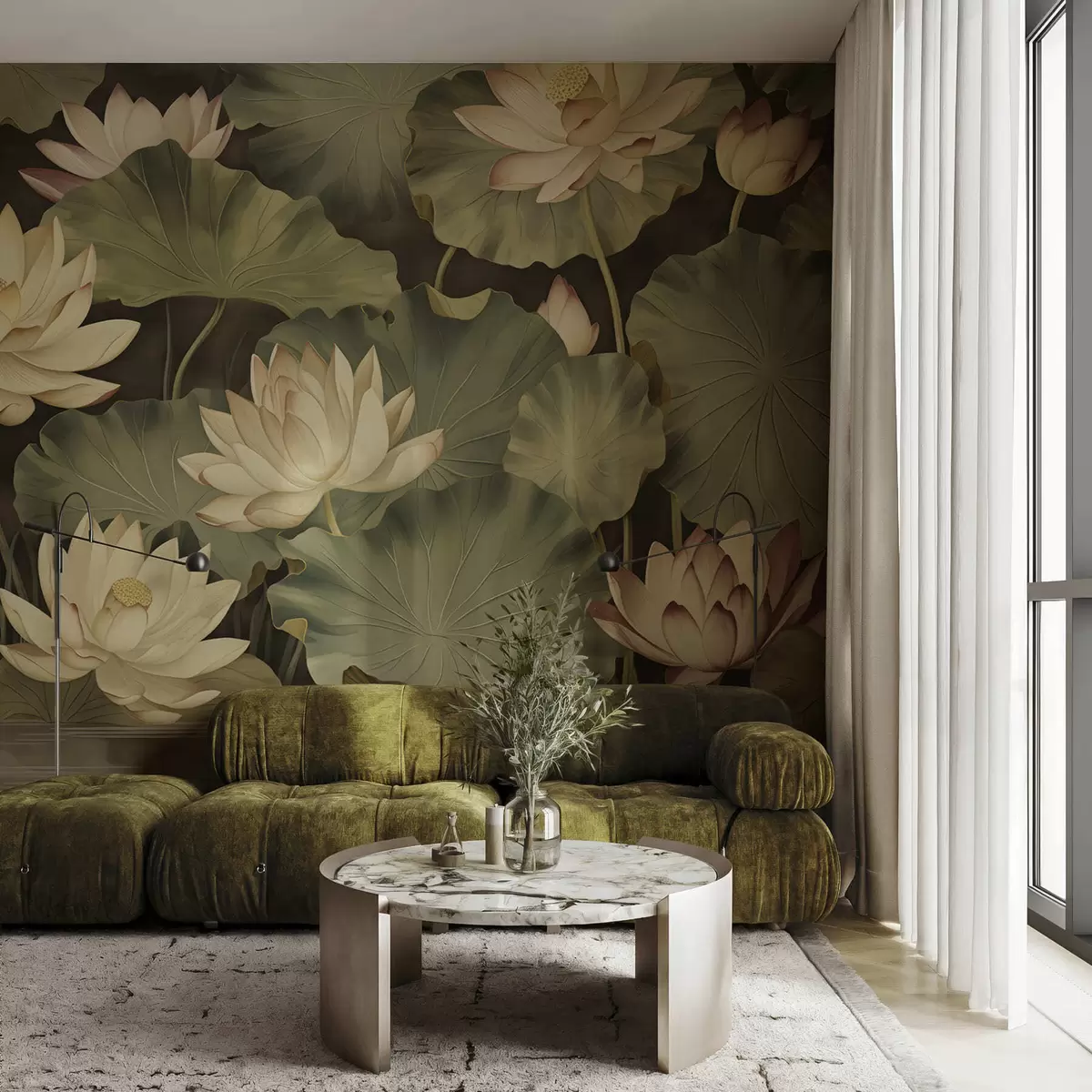 Valokuvatapetti Vintage-tyyliset lootuskukat Nr w05445
