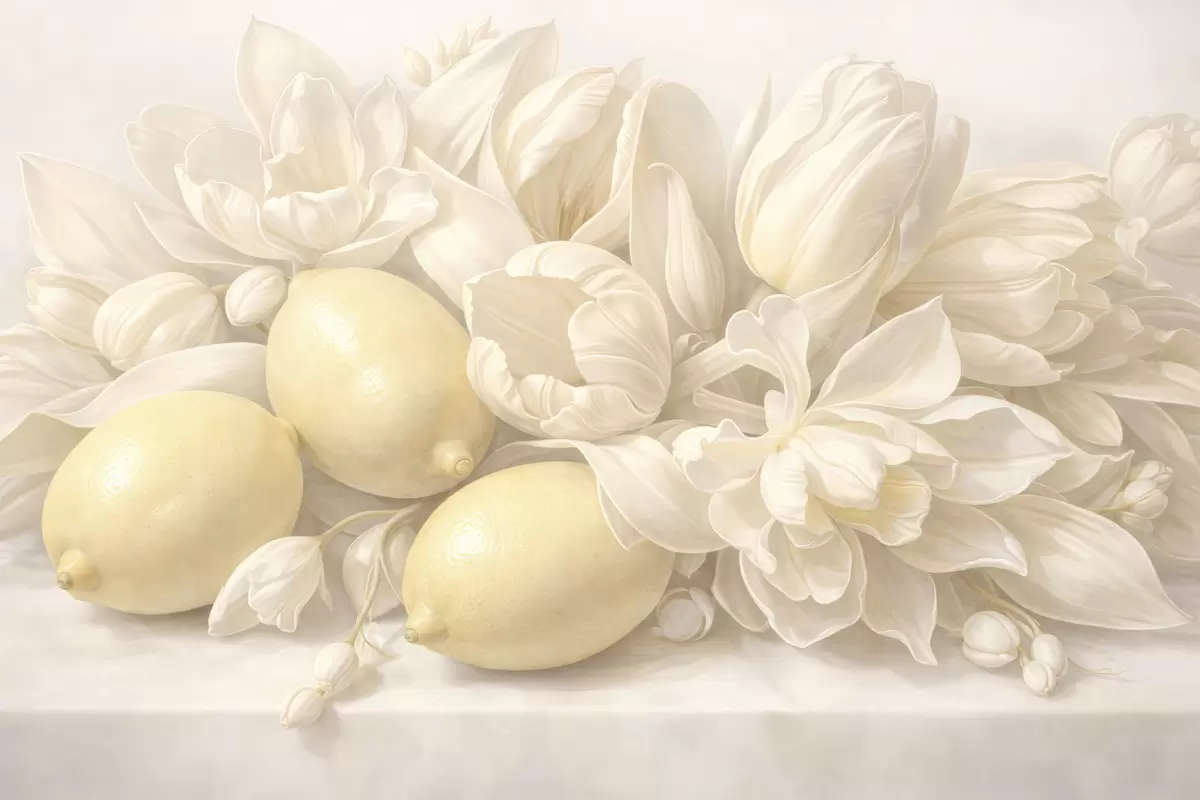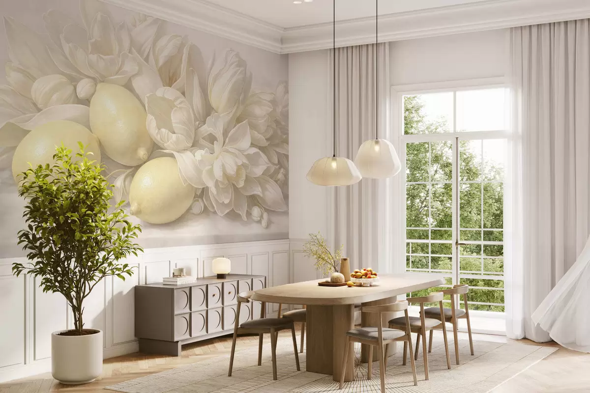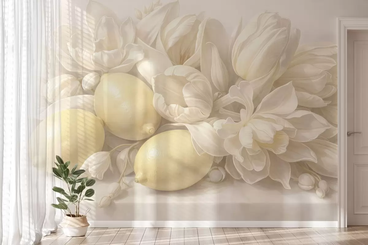 Valokuvatapetti Hienostunut kukkakimppu, jossa on sitruunoita Nr w05449