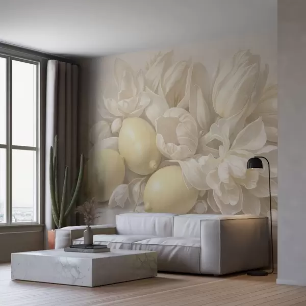 Valokuvatapetti Hienostunut kukkakimppu, jossa on sitruunoita Nr w05449