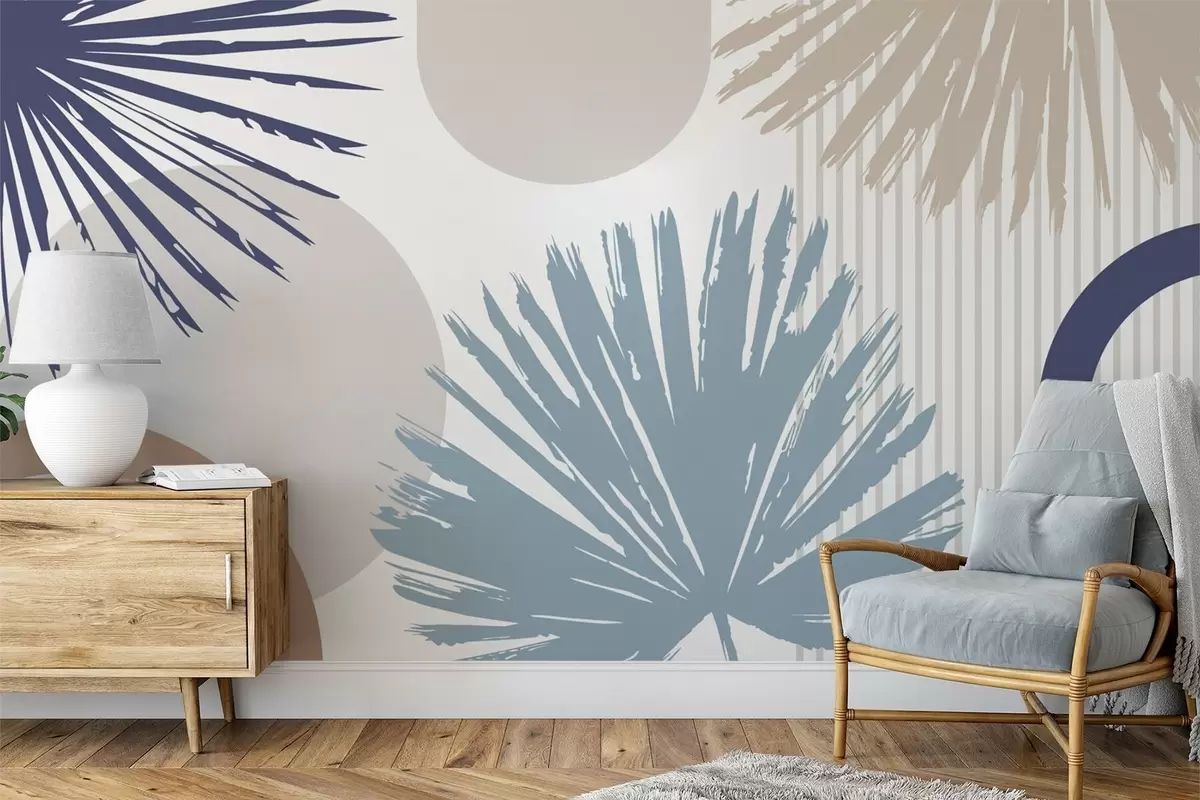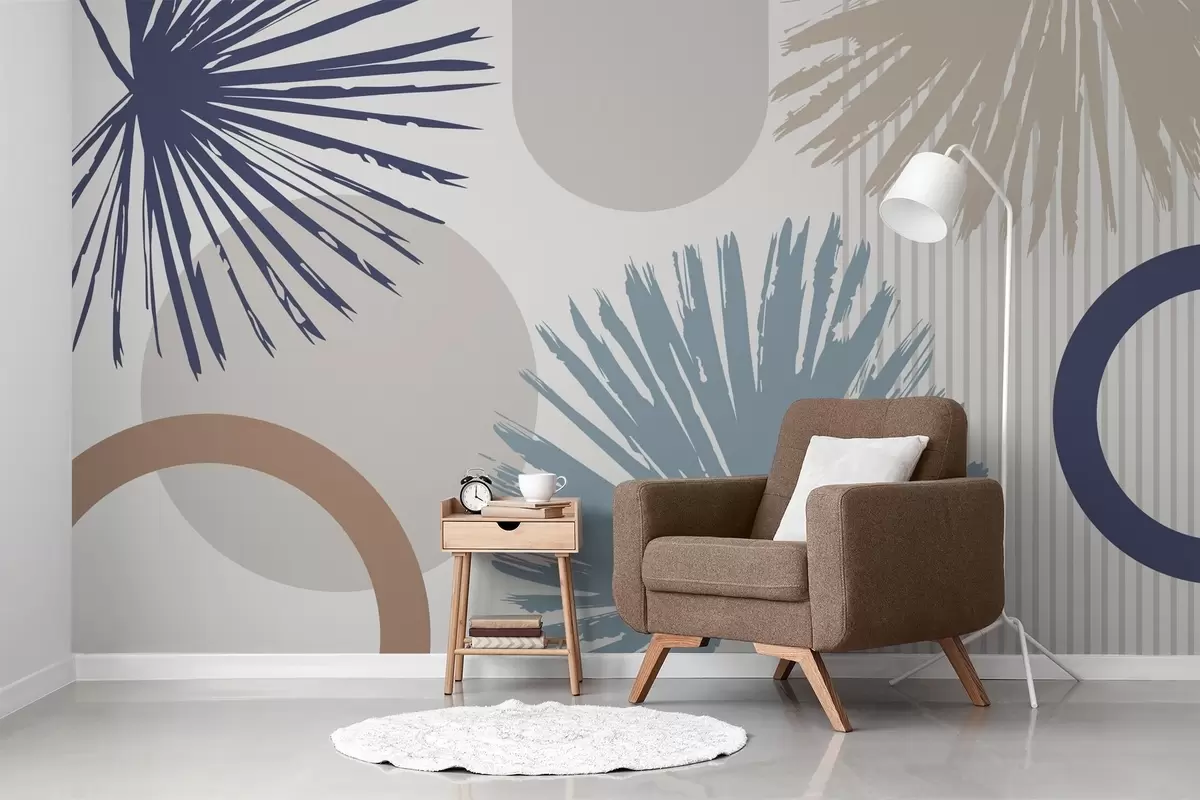 Valokuvatapetti Abstrakti taideteos, jossa on kasvi- ja geometrisia siluetteja Nr w05505v1
