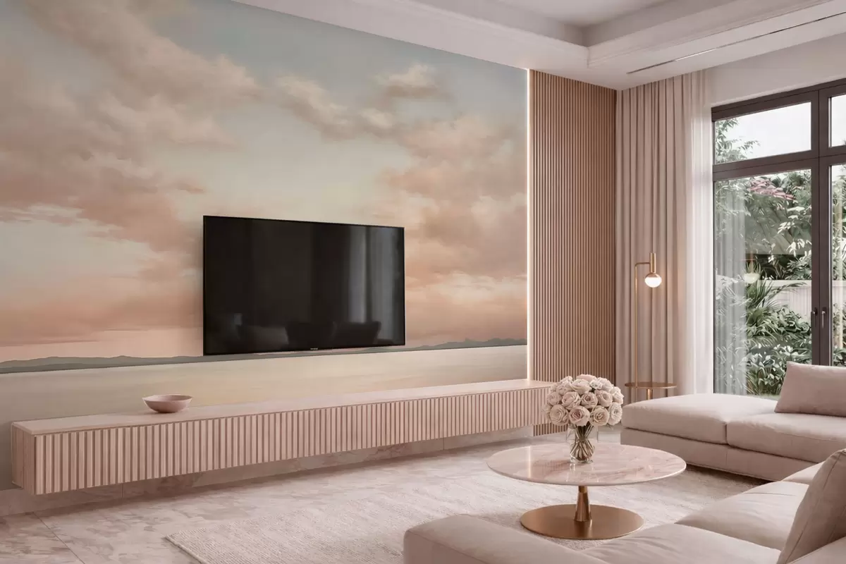 Valokuvatapetti Minimalistinen merimaisema pastellisävyisillä pilvillä Nr w05516