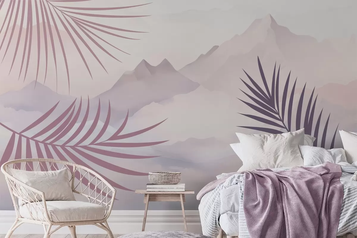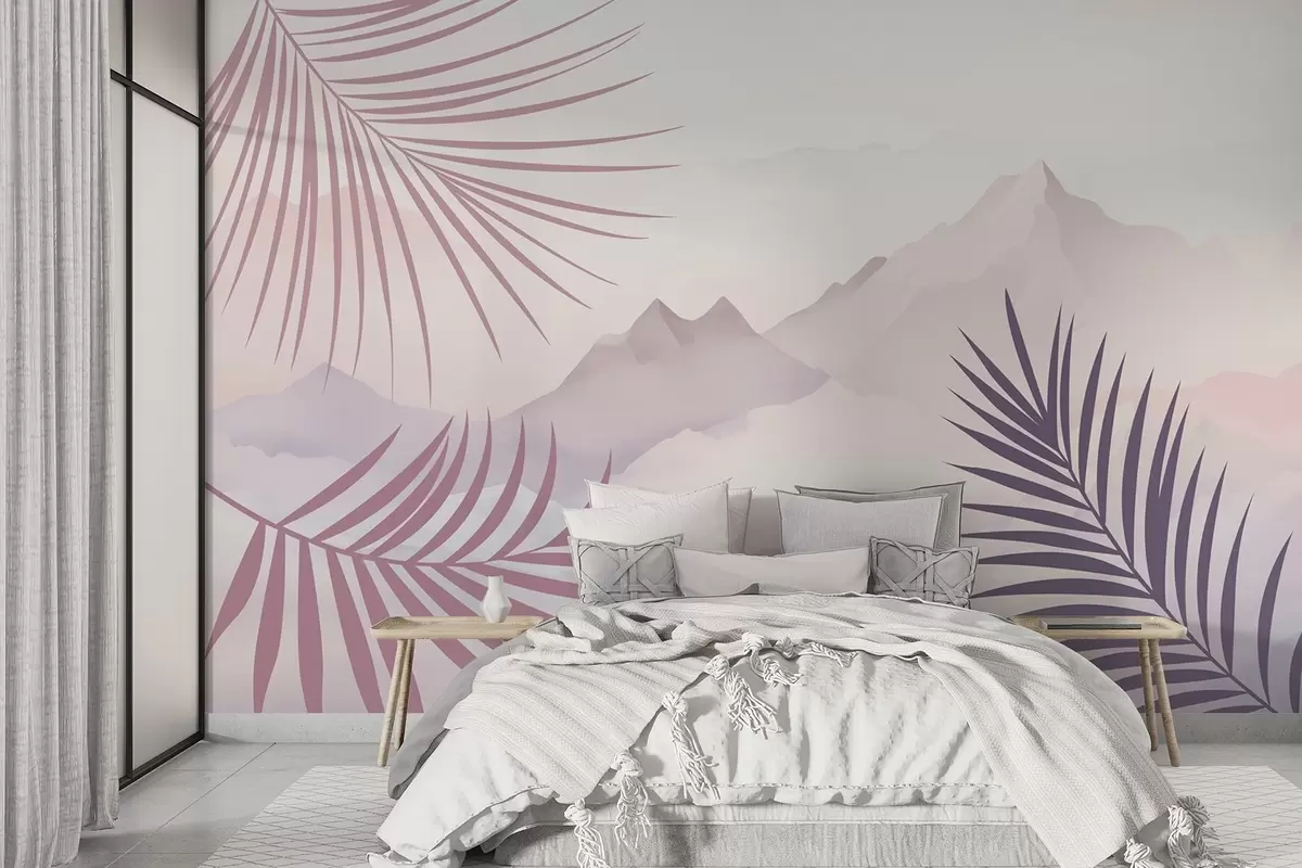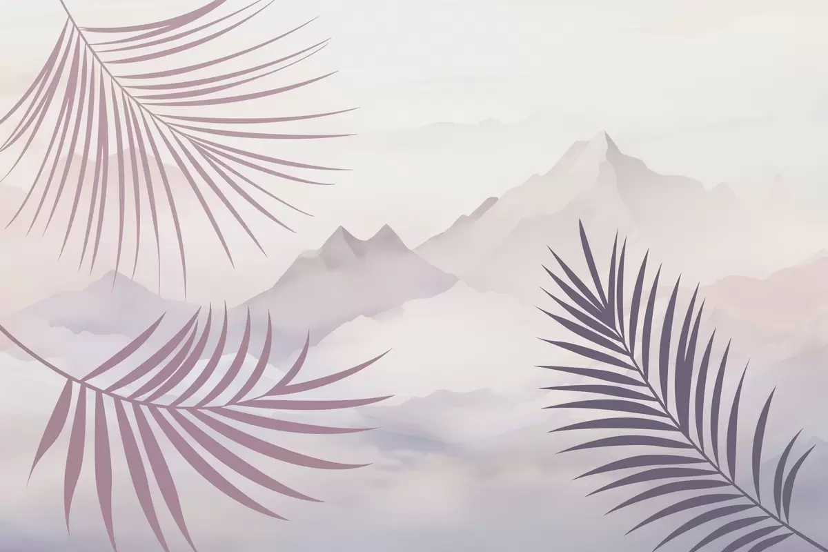 Valokuvatapetti Palmunlehdet vuorten taustalla Nr w05548v1