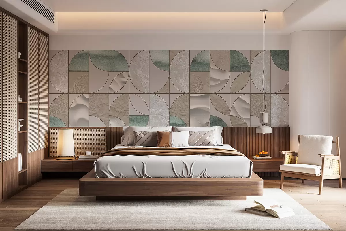 Valokuvatapetti Geometrinen kuvio vihreistä, beigeistä ja valkoisista kuvioista, jotka on järjestetty toistuvaksi abstraktiksi kuvioksi Nr w07928