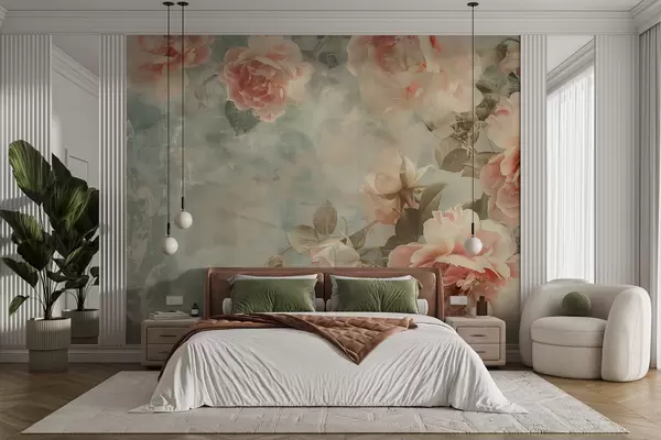 Valokuvatapetti Savuinen tausta herkillä kukilla w07941
