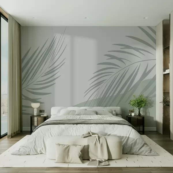 Valokuvatapetti Trooppiset lehdet vaalealla taustalla Nr w08016