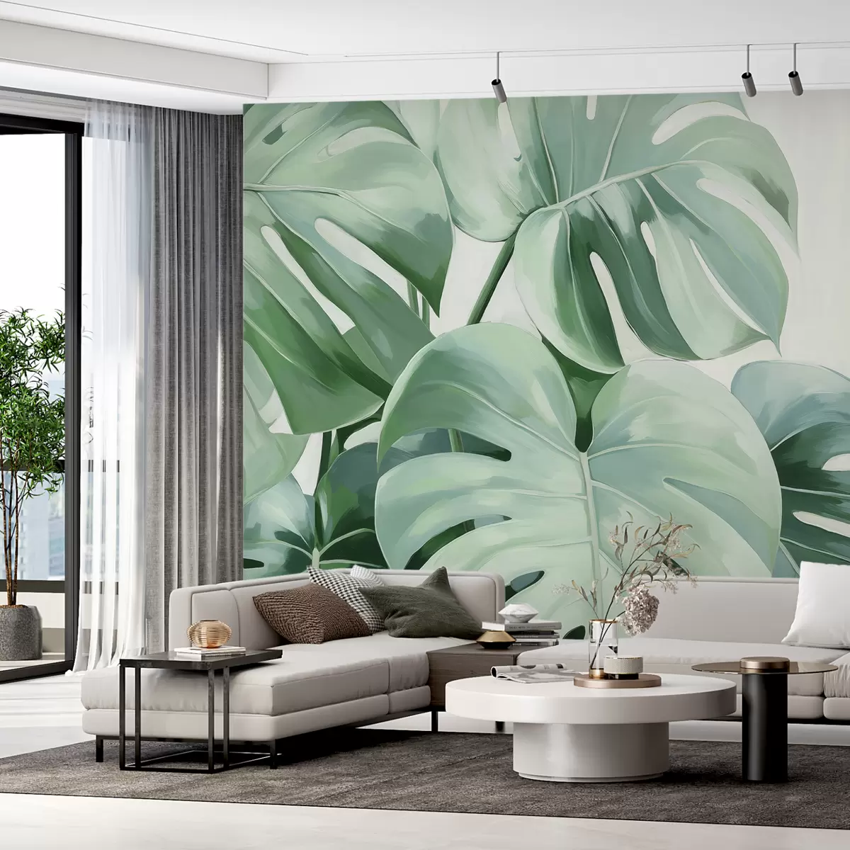 Valokuvatapetti Trooppisen hirviön vihreät suuret lehdet Nr w08116