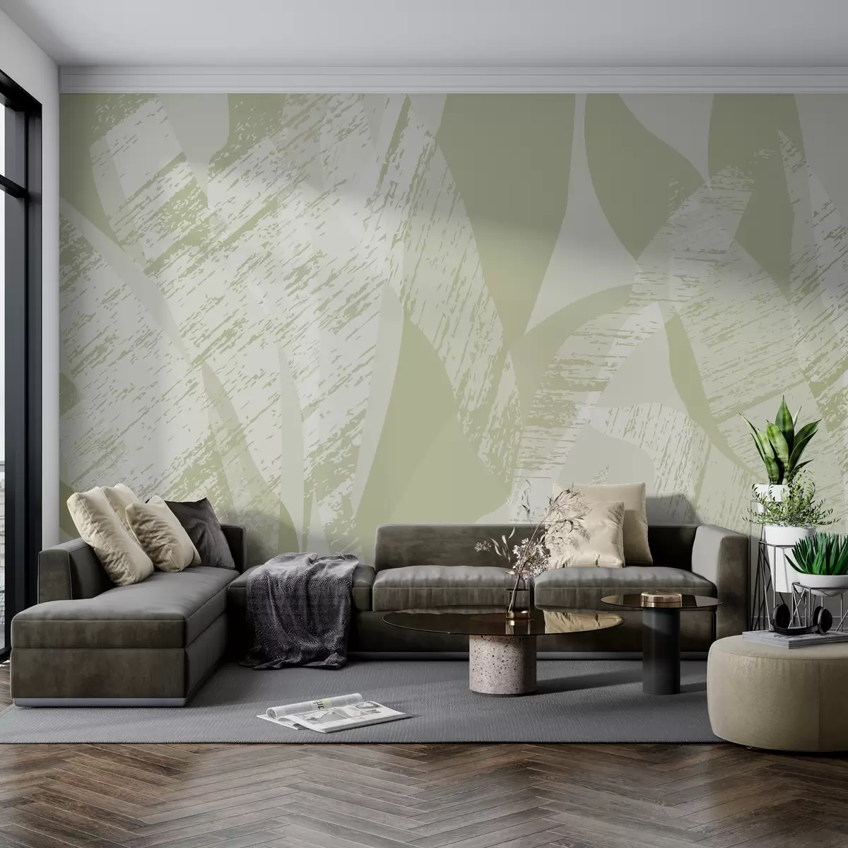 Valokuvatapetti Grunge-lehdet vihreällä värillä Nr w08178v2