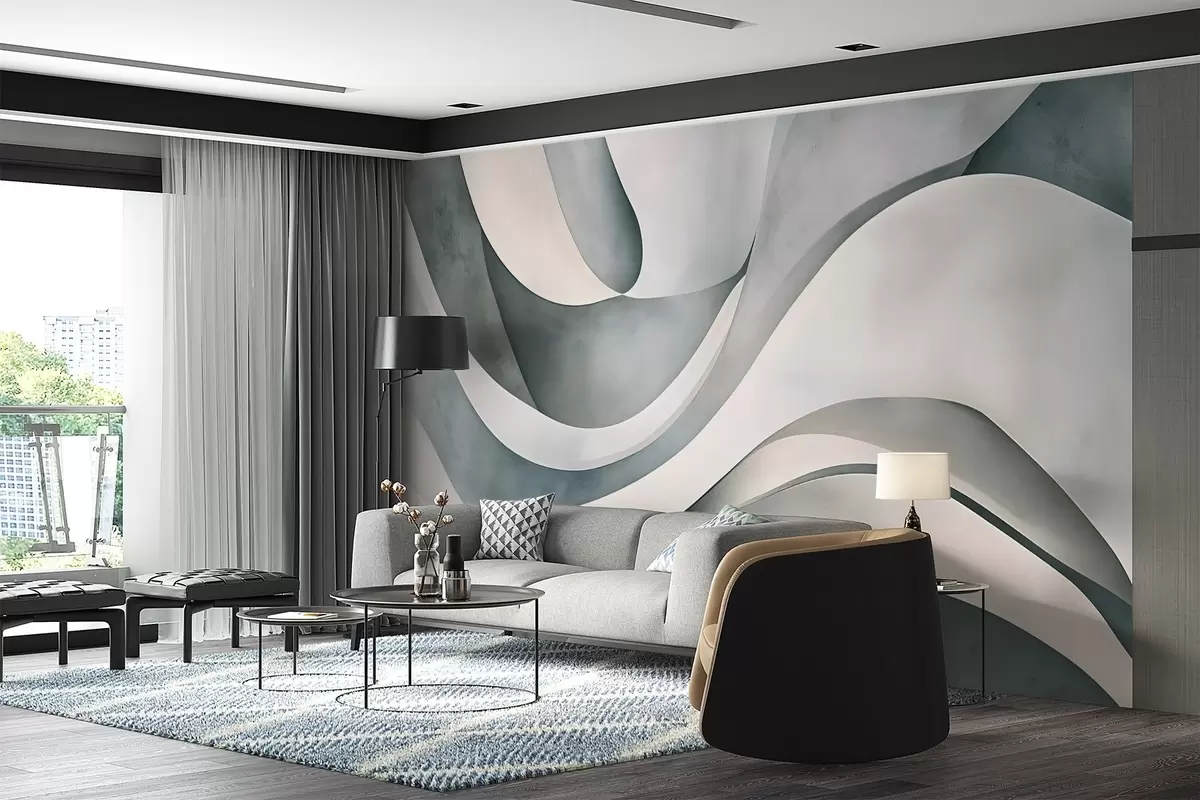 Valokuvatapetti Valkoinen, sininen ja harmaa kaareva muotoja ja muotoja , luoden abstrakti tekstuurinen moderni minimalistinen tulostaa Nr w08439v1