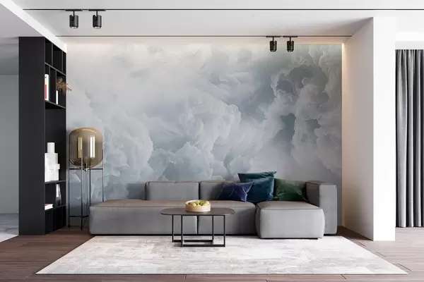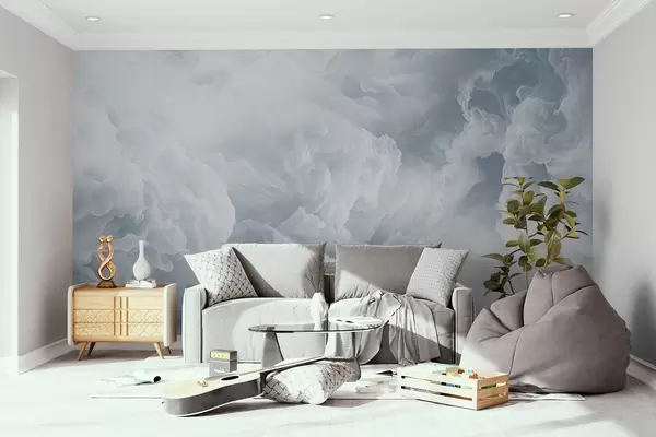 Valokuvatapetti Taivaalla leijuvat ilmavat valkoiset ja siniset pilvet Nr w08495