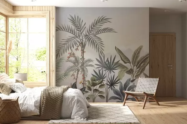 Valokuvatapetti Trooppinen viidakko palmujen ja värikkäiden lintujen kanssa Nr w08496