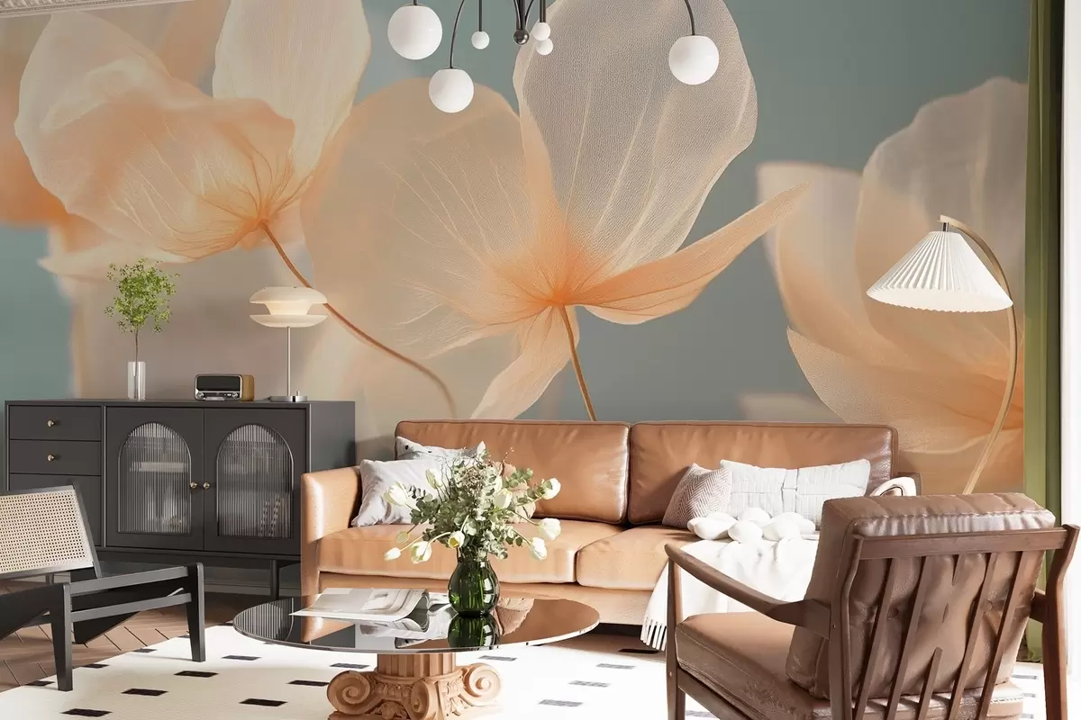 Valokuvatapetti Lootuksen terälehdet, herkkä koostumus sinisellä taustalla Nr w08500