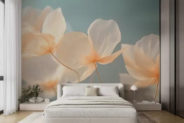 Valokuvatapetti Lootuksen terälehdet, herkkä koostumus sinisellä taustalla Nr w08500