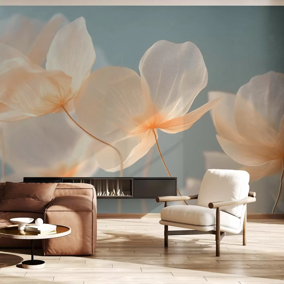 Valokuvatapetti Lootuksen terälehdet, herkkä koostumus sinisellä taustalla Nr w08500