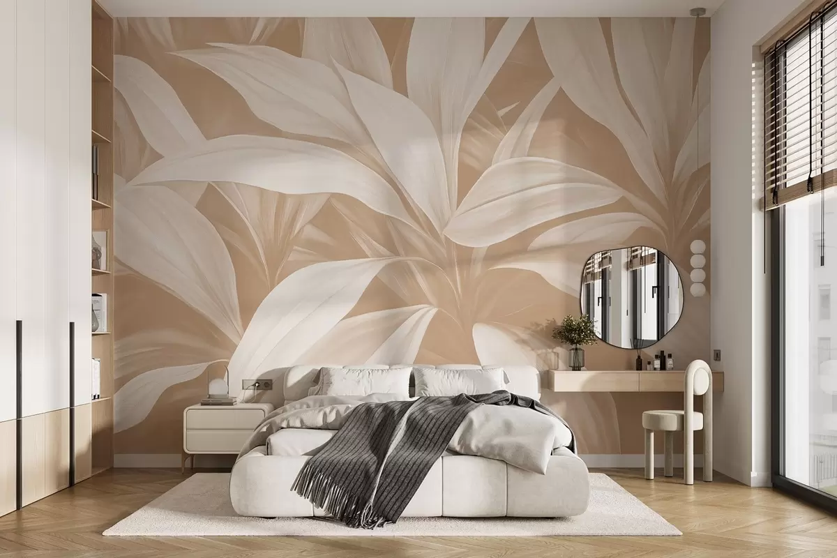 Valokuvatapetti Suuri kasvi lehdet pehmeän vaaleanpunainen väri Nr w08501