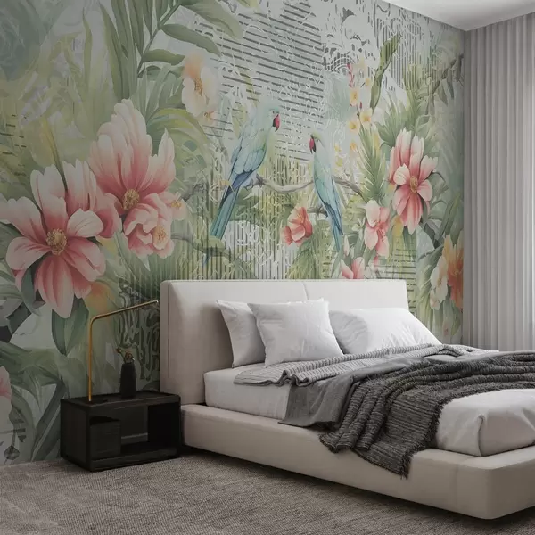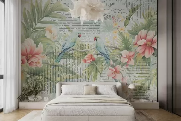 Valokuvatapetti Papukaijat trooppisissa pensaissa w08508