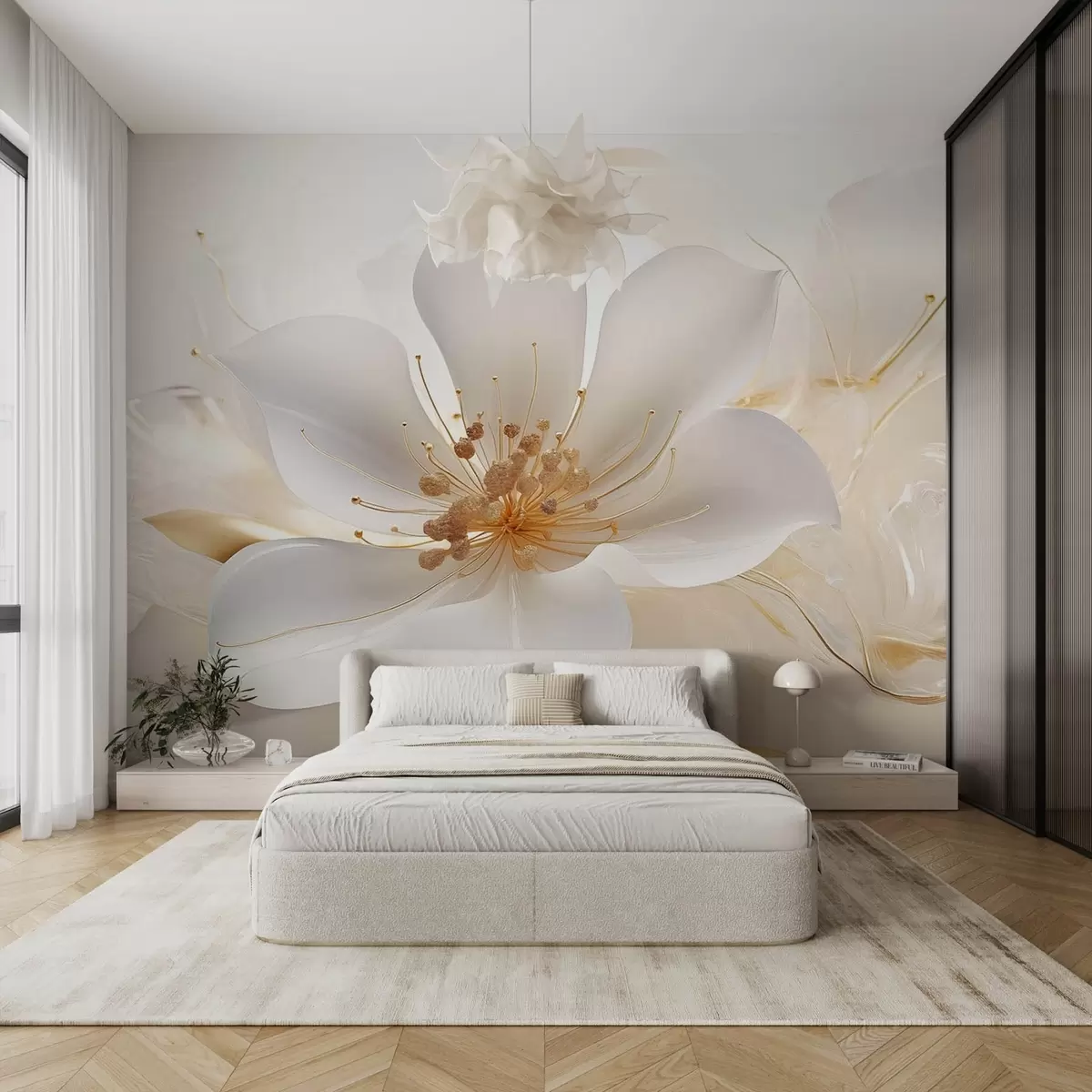 Valokuvatapetti Suuri valkoinen kukka abstraktilla taustalla Nr w08510