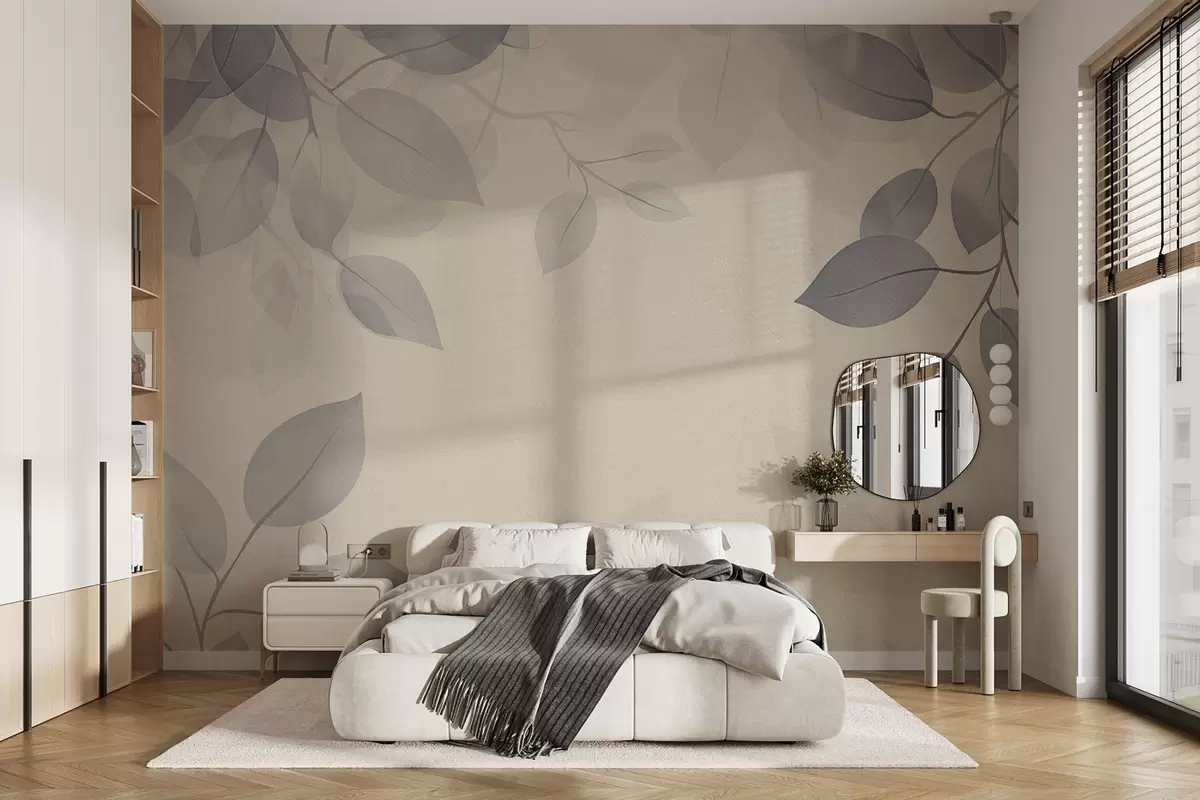Valokuvatapetti Riippuvat oksat, joissa on sinisen sävyisiä lehtiä Nr w08551