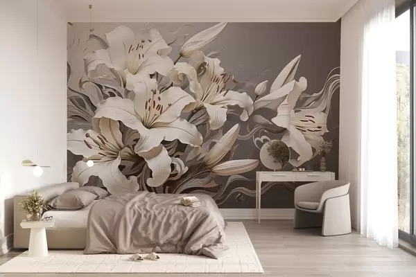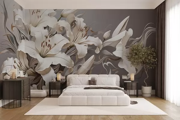 Valokuvatapetti Hienostuneita valkoisia liljoja pastellisävyissä sävyissä Nr w08633v1