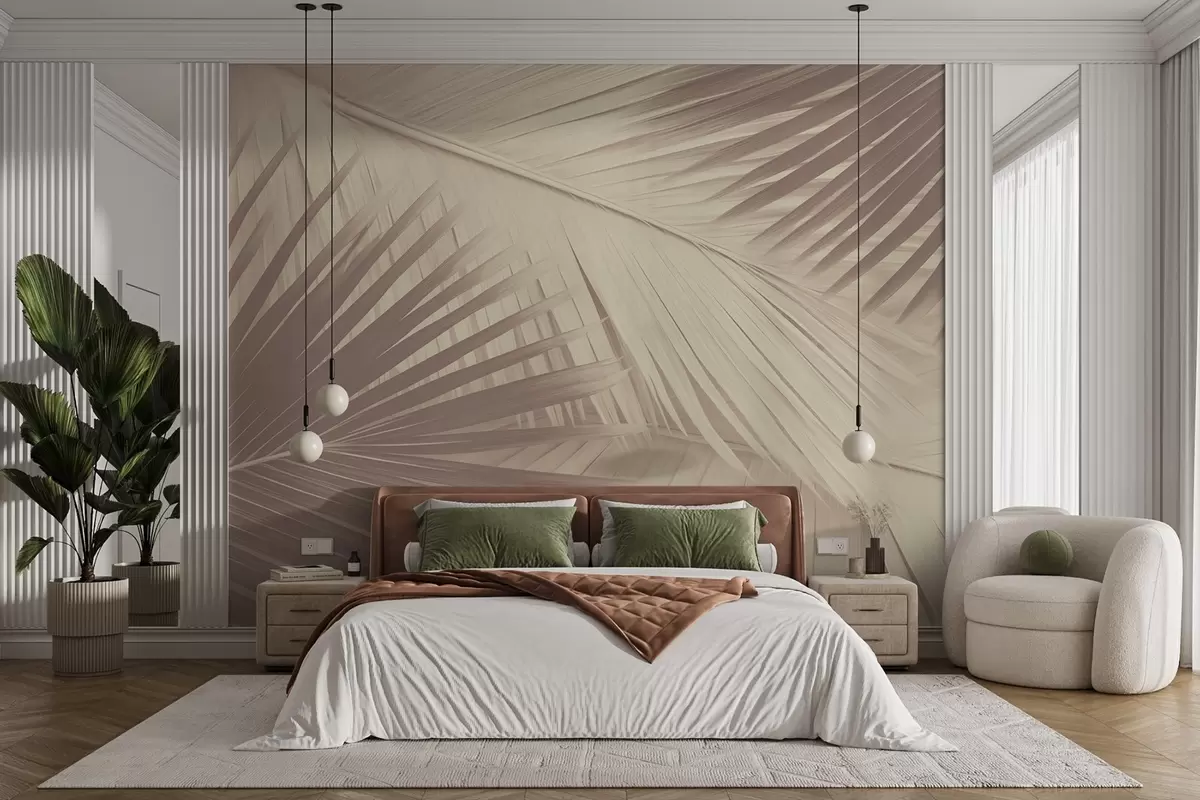 Valokuvatapetti Abstrakteja palmunlehtiä pehmeissä sävyissä Nr w08677